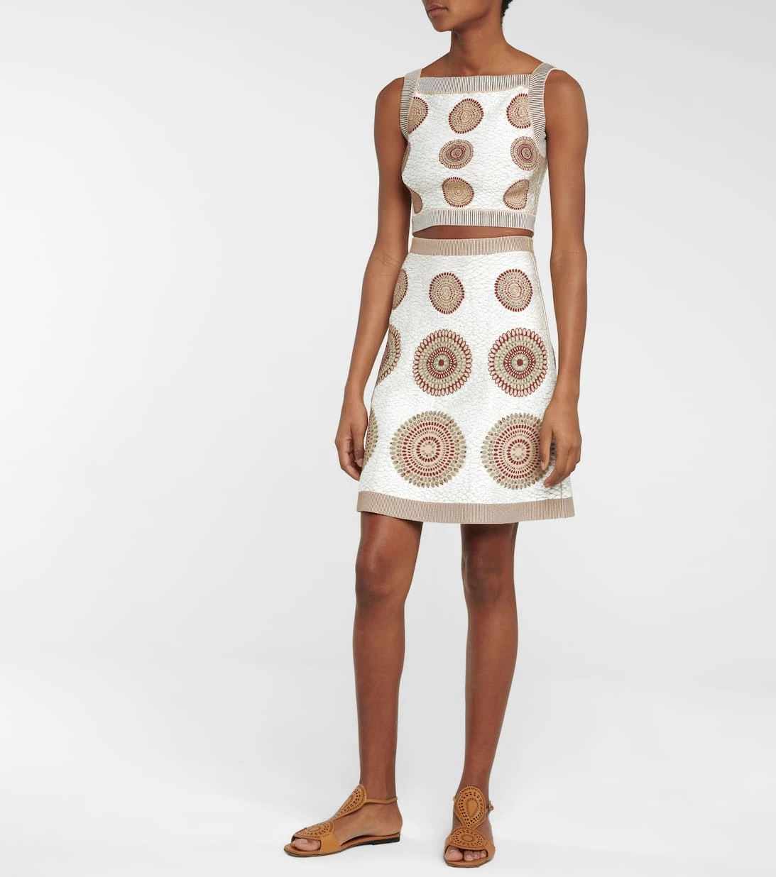 Grafische Muster, ein luxuriös-schweres Jacquard-Gewebe und die feminine Silhouette in A-Linie präsentieren den Minirock von Alaïa im besten Licht. Das weiße Design, das kurz über dem Knie endet, wurde in Italien gefertigt und mit einem praktischen Reißverschluss abgerundet. Wir finden: In Kombination mit dem passenden Cropped-Top der Marke gewinnt das Modell weiter an Ausdruck.