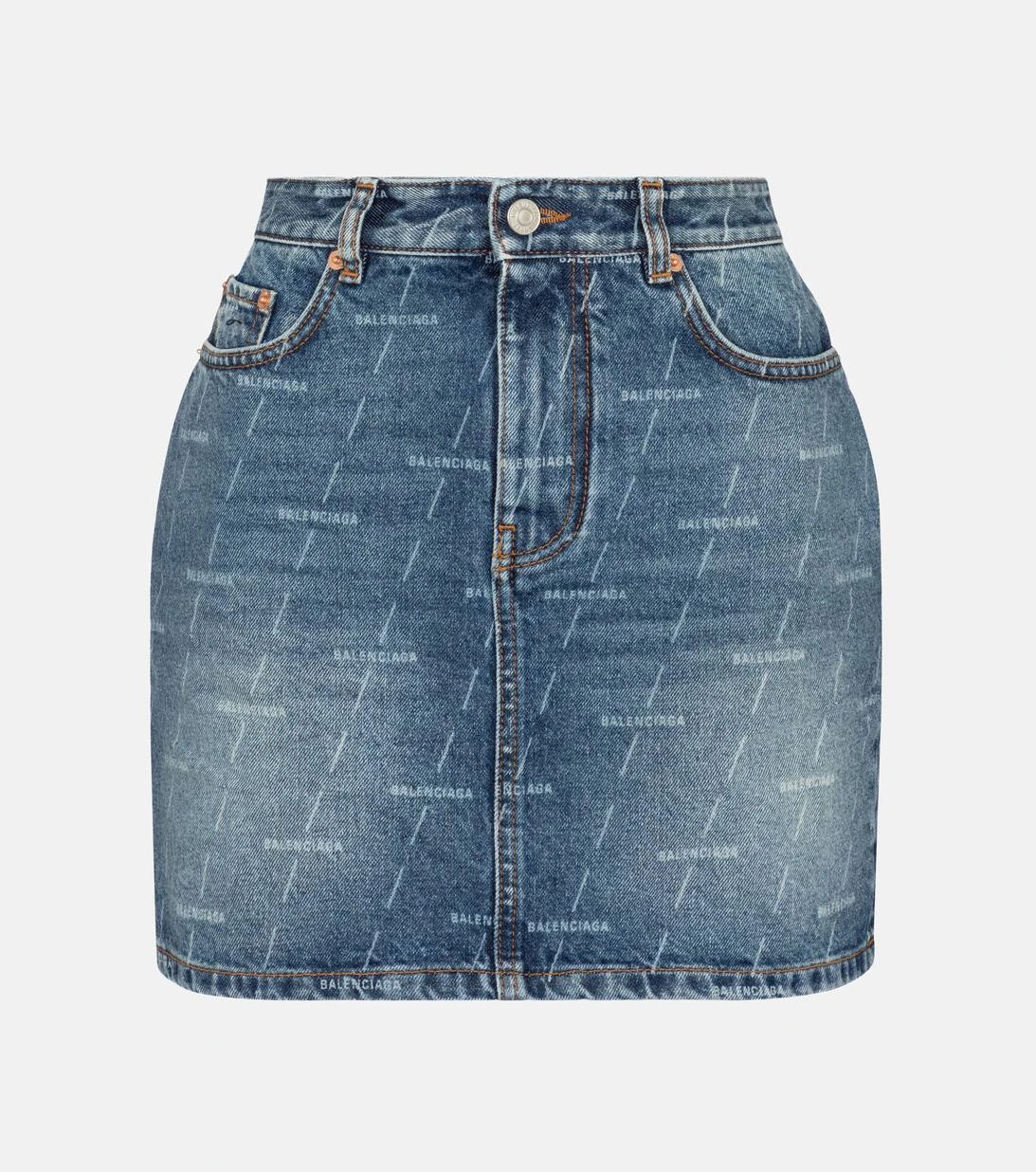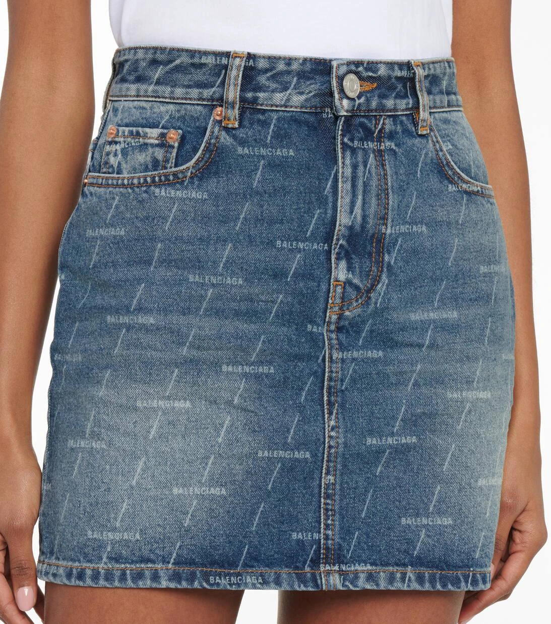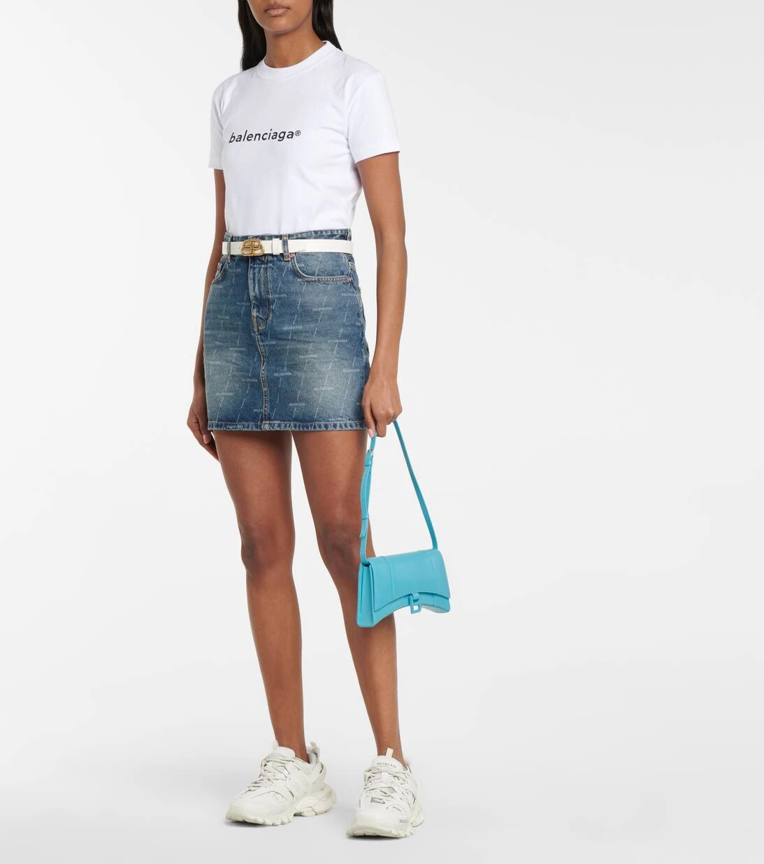 Der Logomania-Trend nimmt kein Ende: Dieser hellblaue Jeansrock von Balenciaga wurde in Italien aus komfortablem Baumwoll-Denim gefertigt und allover mit einem dezenten Logoprint versehen. Betonen Sie Ihre Taille, indem Sie ein Top in den hochsitzenden Bund stecken.