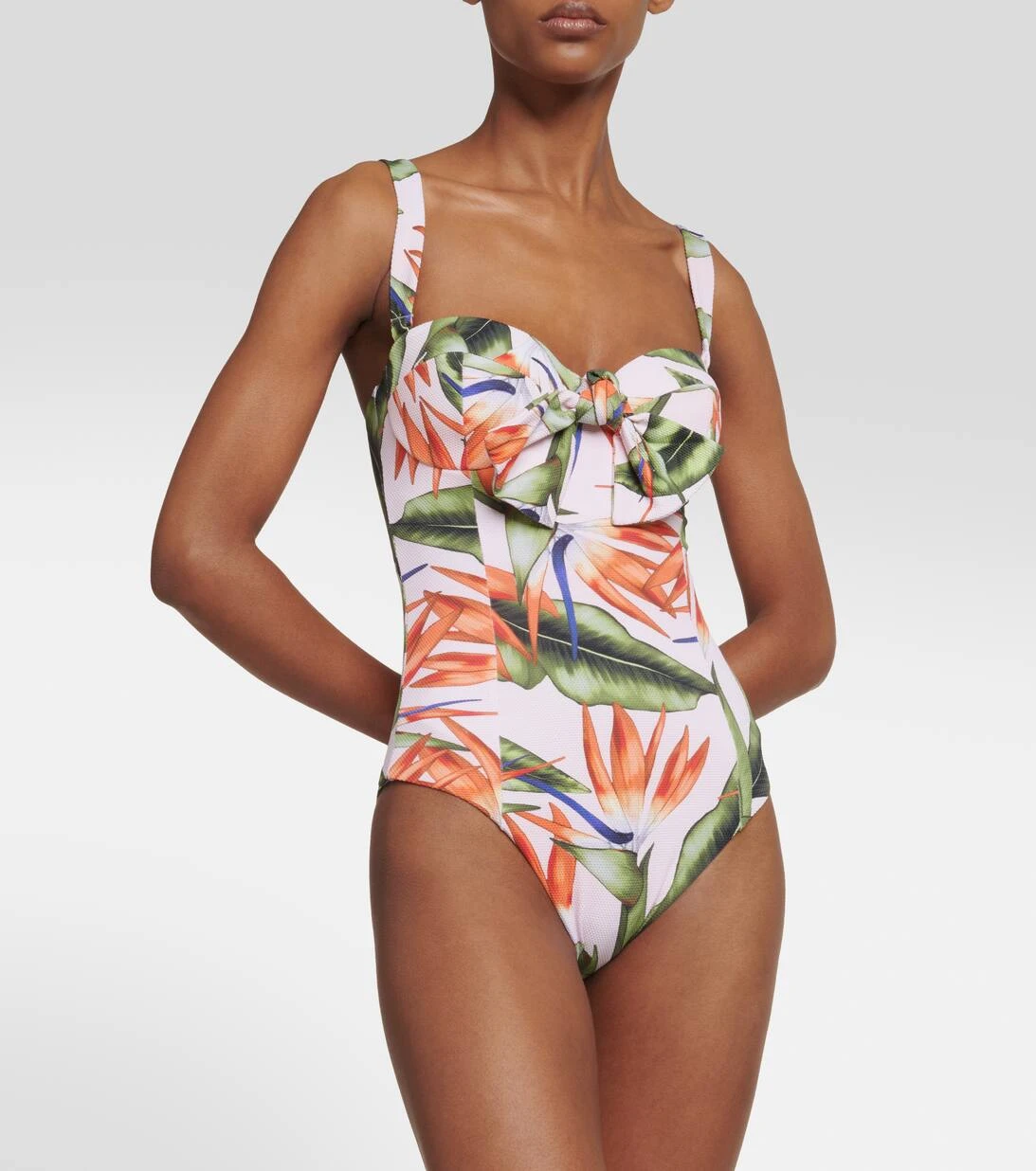 Der Carla Badeanzug von Alexandra Miro sorgt für einen glamourösen Auftritt am Pool. Das Design zeigt einen botanischen Blumenprint und verfügt über stützende Cups mit Bügeln.