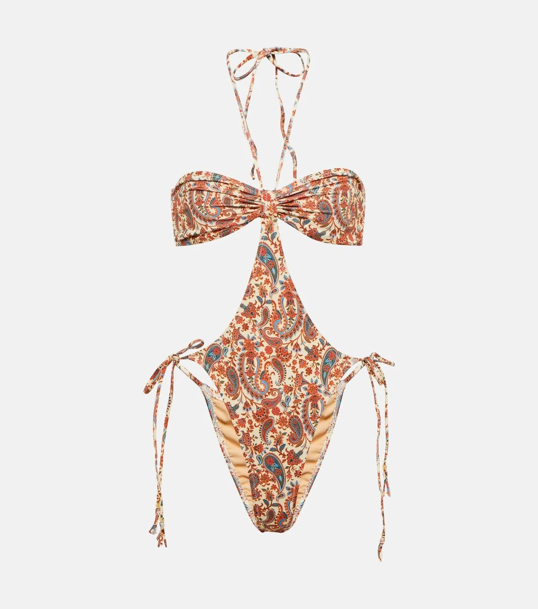 Der Jade Badeanzug von Bananhot besticht durch charmante Cut-outs und einen detailreichen Paisley-Print. Er verfügt zudem über einen Neckholder-Träger und seitliche Schnürungen, wodurch der Fit individuell angepasst werden kann.