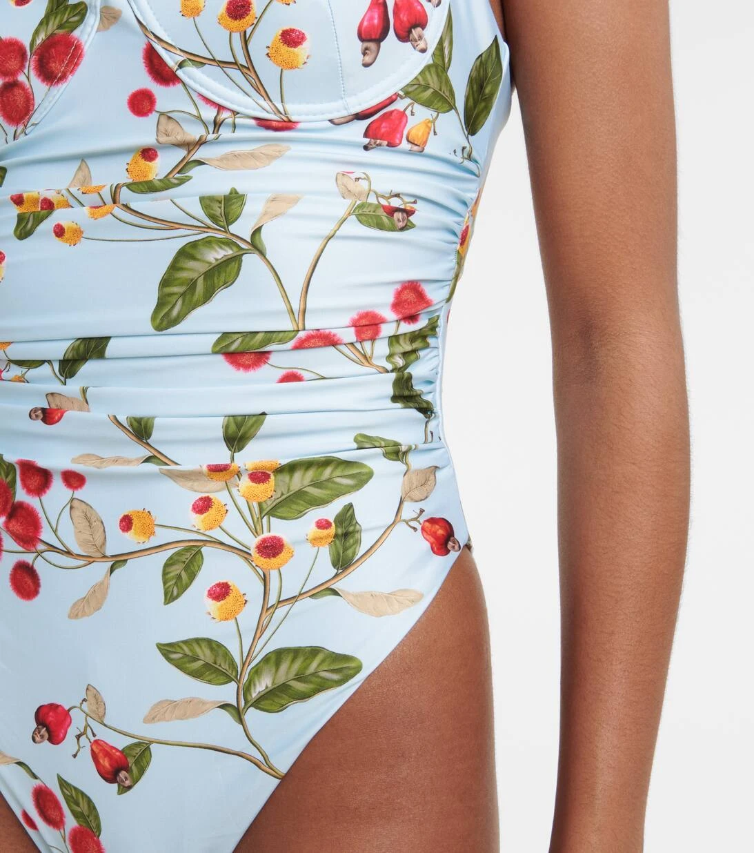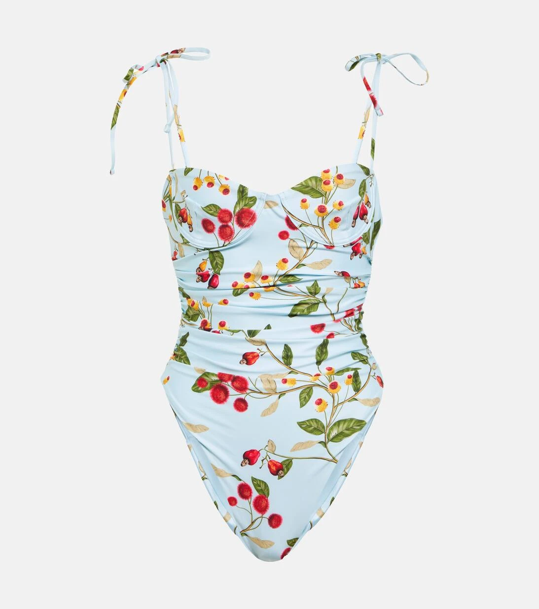 Der Rábano Badeanzug von Agua by Agua Bendita ist ein unverzichtbares Design für Ihren Strandurlaub. Das Modell wurde aus recycelten Materialien mit einem botanischen Print gefertigt und verfügt über einen herzförmigen Ausschnitt, Plisseefalten am Oberteil und Träger zum Binden.