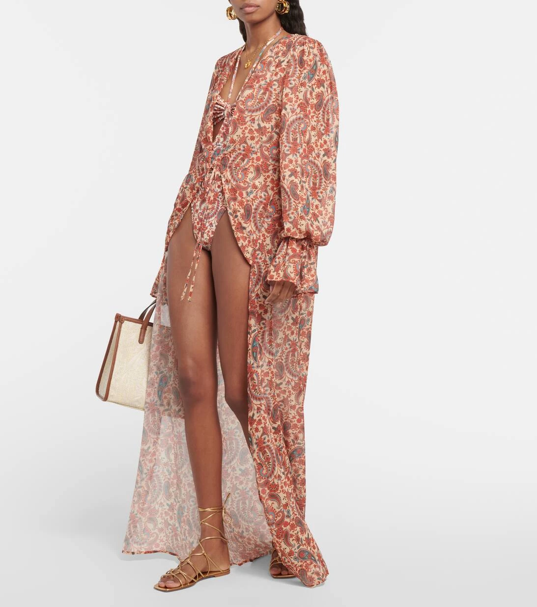 Kleiden Sie sich für Ihren nächsten langen Strandspaziergang in diesen stilvollen Cover-up von Bananhot. Das bedruckte Design verfügt über Bänder zum Binden auf der Vorderseite sowie fließende, lange Ärmel.