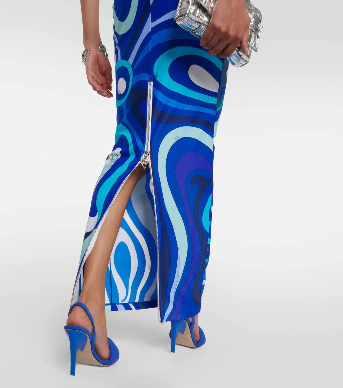 Verfeinern Sie Ihre Resort-Garderobe mit diesem bedruckten, körperbetonten Maxirock aus Seide von Pucci. Das legendäre psychedelische Wirbelmotiv ist ein Markenzeichen, das Pucci den Ehrentitel „Prinz der Prints“ einbrachte.