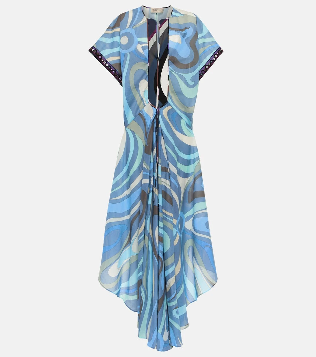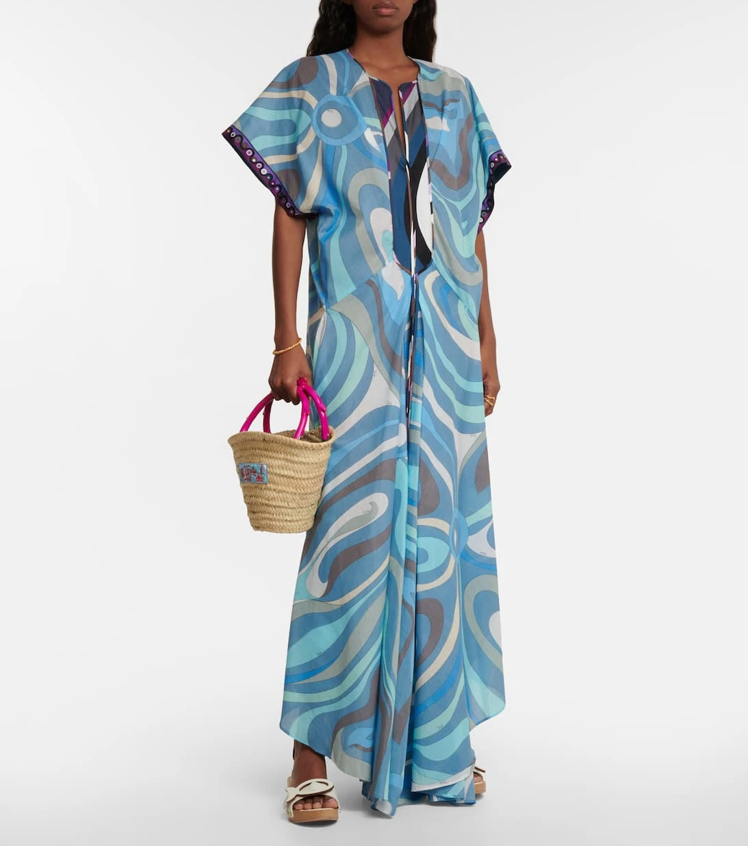 Tauchen Sie mit diesem luftigen Kaftan aus der „La Grotta Azzurra“ Kollektion von Pucci ganz in die einzigartige Urlaubsästhetik des Labels ein. Das aus leichter Baumwolle gefertigte Design ist mit den markentypischen Swirl-Prints verziert.