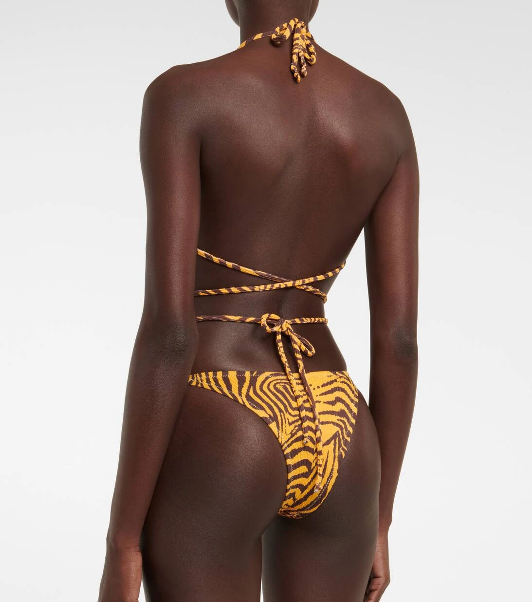 Das Miami Bikini-Oberteil von Reina Olga besticht durch einen exotischen Tiger-Print. Das von Hand gefertigte Design ist mit langen Bändern akzentuiert, die sich elegant um den Oberkörper binden lassen.