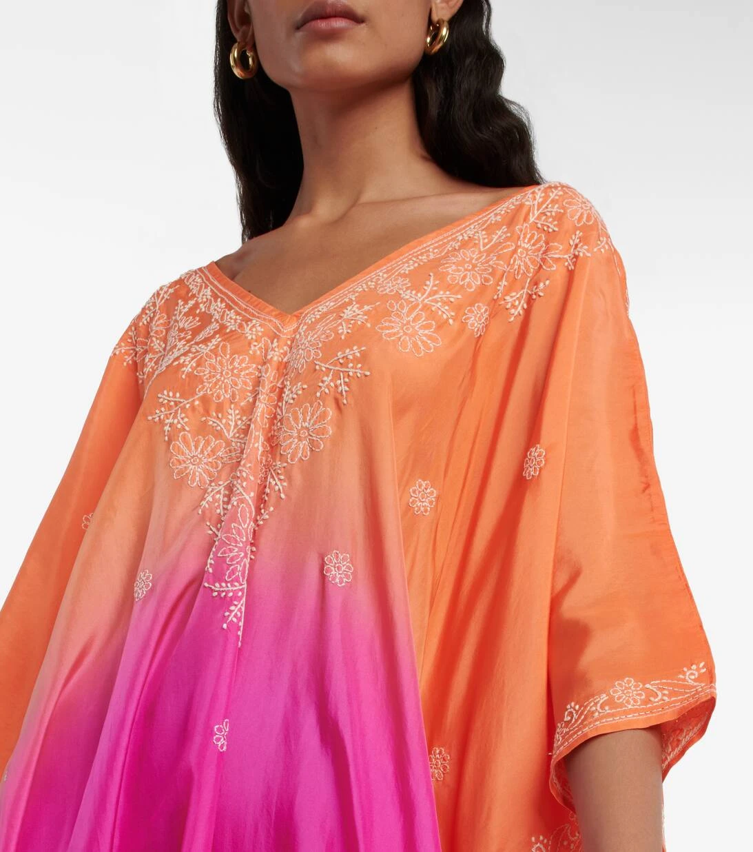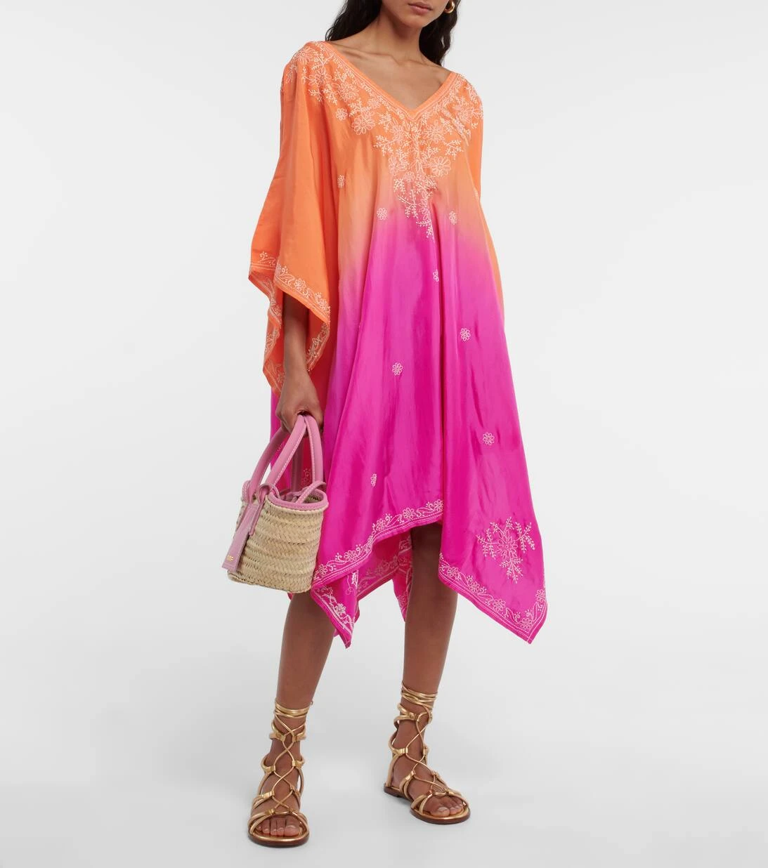 Mit glamourösen und atmungsaktiven Styles wie diesem Midikleid von Juliet Dunn sind Sie bereit für den Urlaub. Das Modell aus reiner Seide hat eine luftige Silhouette und aufwendige Stickereien.