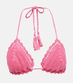 Dieses Bikini-Oberteil von Anna Kosturova verleiht Ihren Looks einen Boho-Touch. Dieses lässige gehäkelte Modell aus Baumwolle verfügt über Triangel-Cups und Troddeln an den Bindebändern seitlich und vorne.