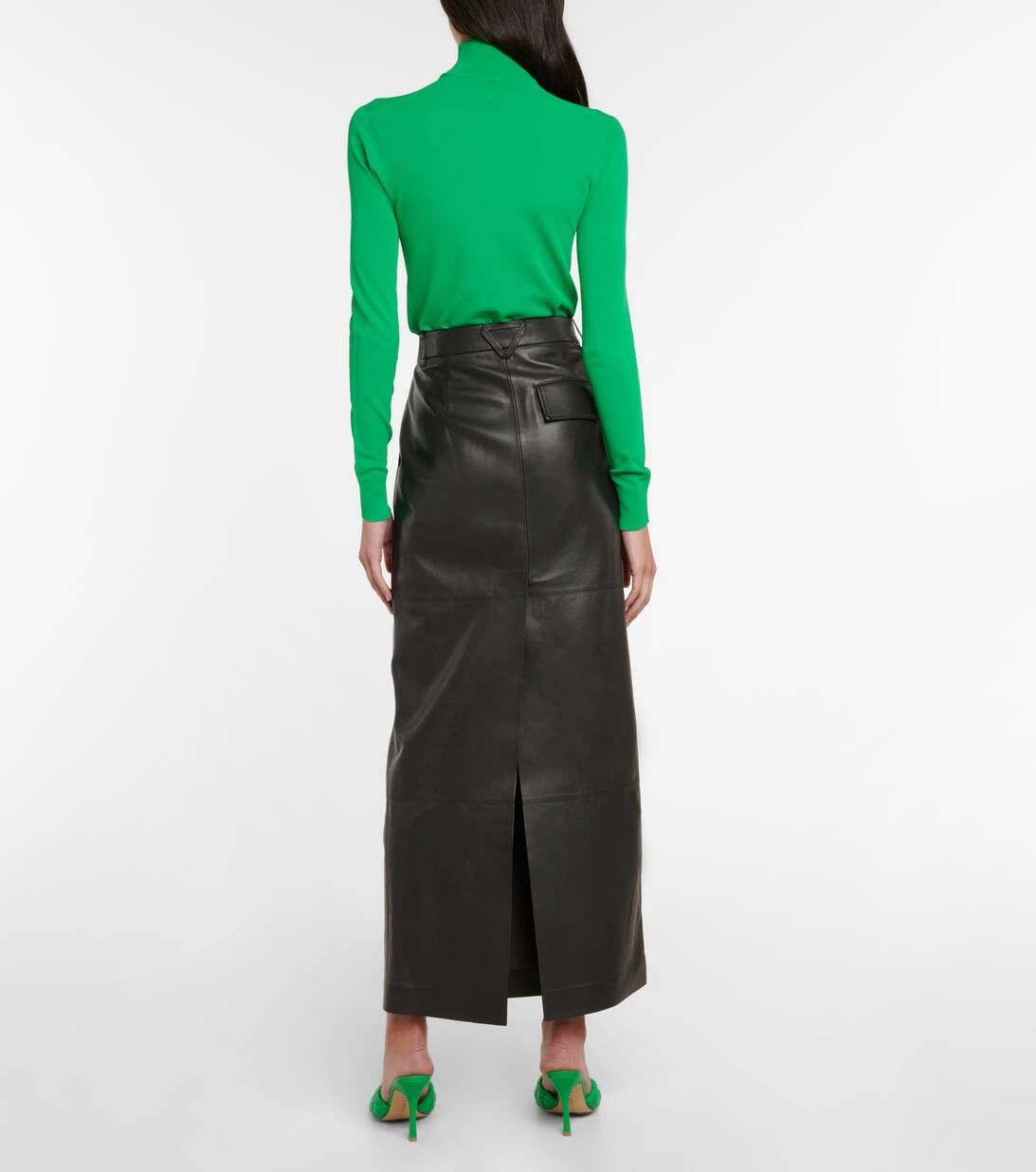 Dieser zeitlose Maxirock von Bottega Veneta stellt eine sinnvolle Investition in Ihre Garderobe dar. Das dunkelbraune Modell aus butterweichem Lammleder besitzt eine klassische Bleistiftsilhouette.