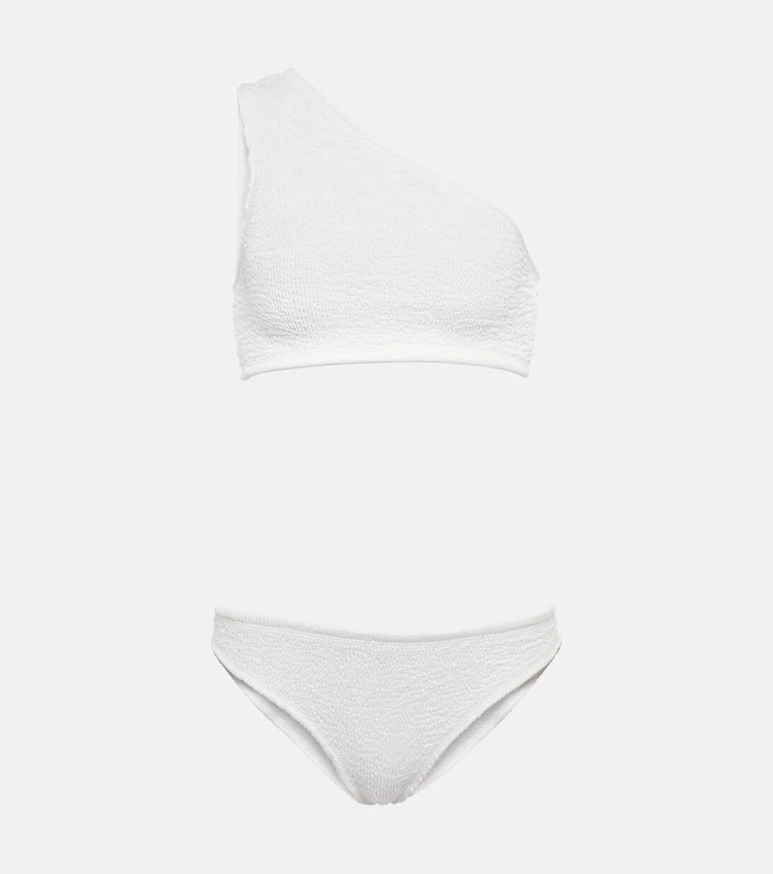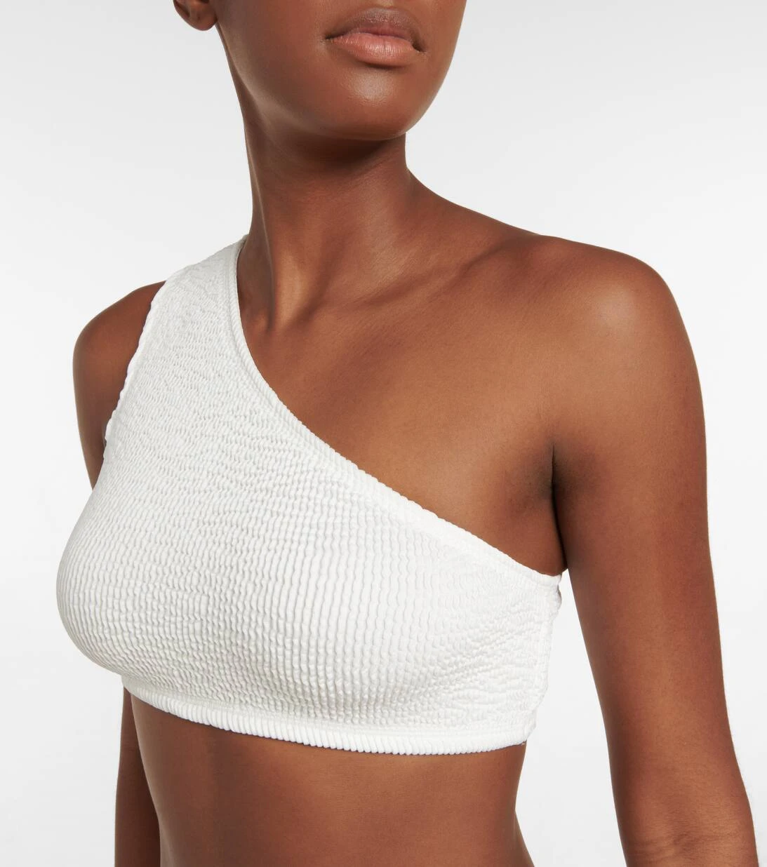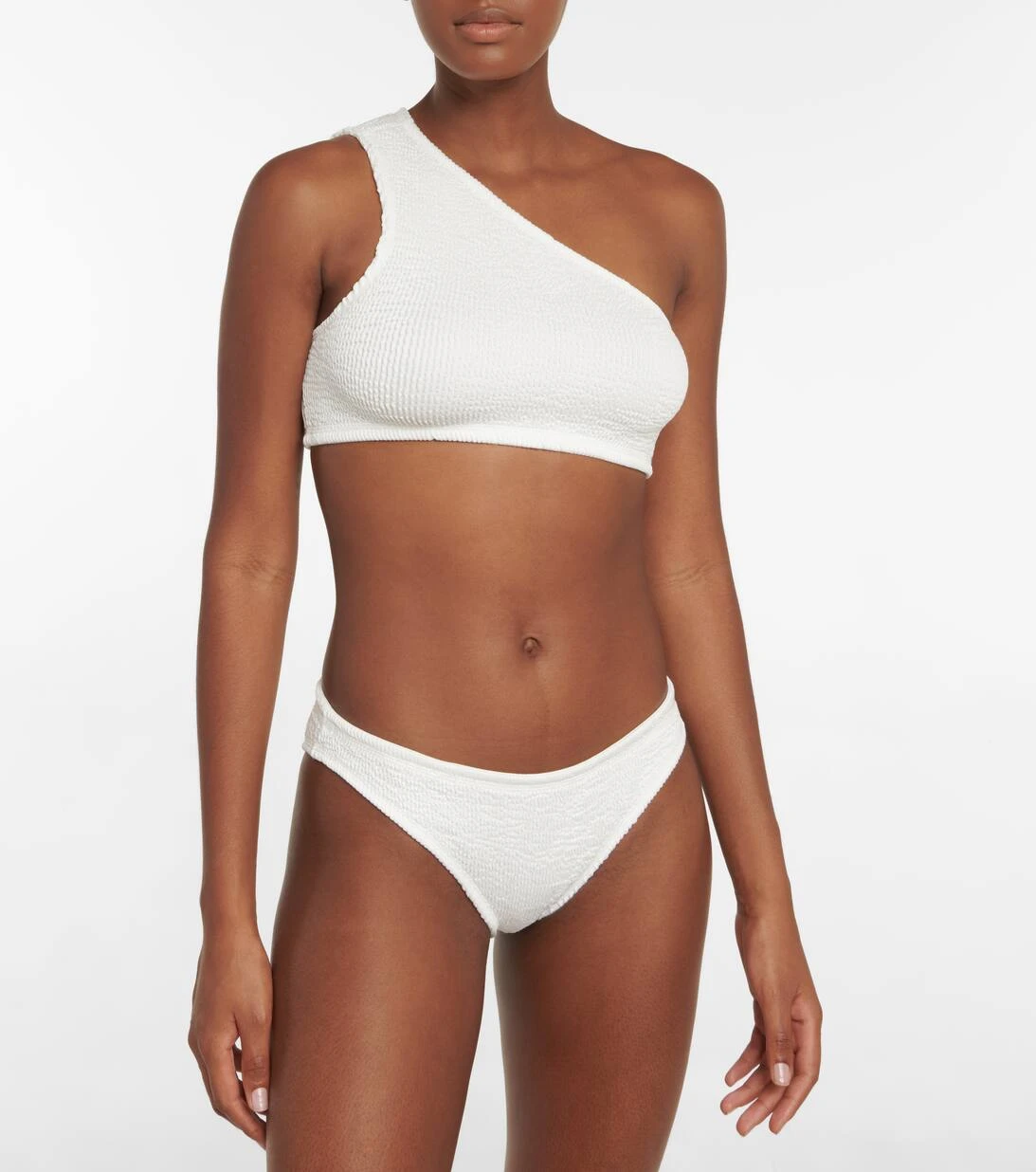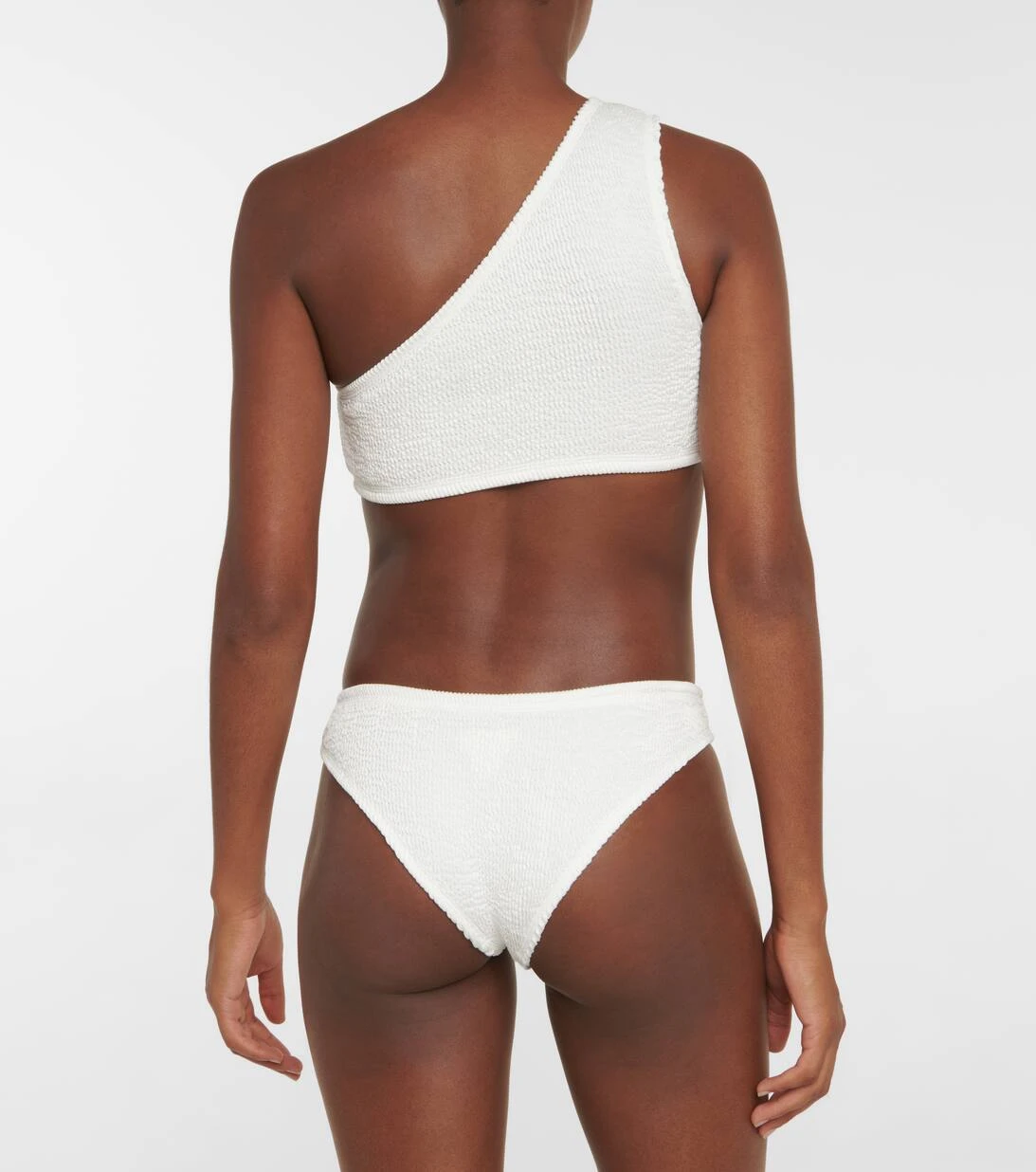 Genießen Sie die Sonne in diesem weißen Bikini von Bottega Veneta. Das elegante Design zeigt sich in Knitteroptik mit One-Shoulder-Oberteil und einem Low-Rise-Höschen für minimale Bedeckung.