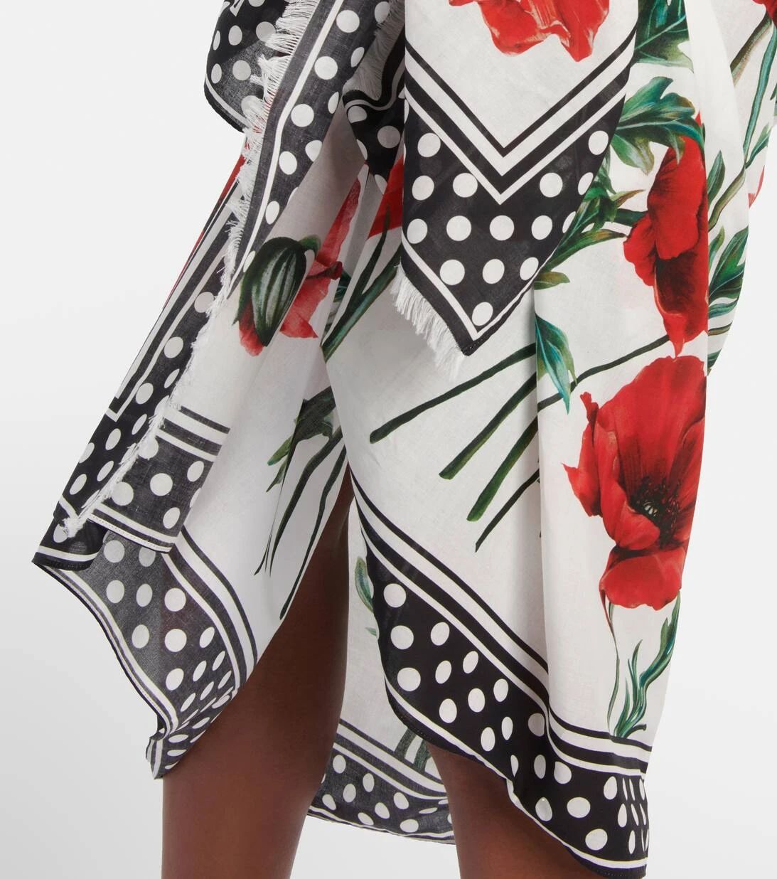 Dolce&Gabbana erweckt diesen Pareo mit einem eleganten, markentypischen Mohnblumen-Print zum Leben. Das in Italien aus reiner Baumwolle gefertigte Design zum Binden verfügt über eine Borte mit Polka-Dots und kurze Fransen an den Kanten.