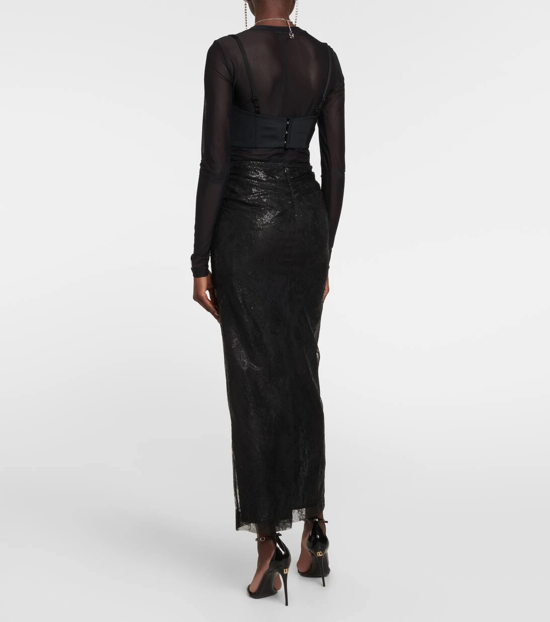 Dieser Midirock von Dolce&Gabbana präsentiert sich in dem unverkennbaren Material der Marke. Er wurde in Italien aus aufwendiger Blumenspitze gefertigt und mit einer hohen Taille sowie dezenten Raffungen versehen.