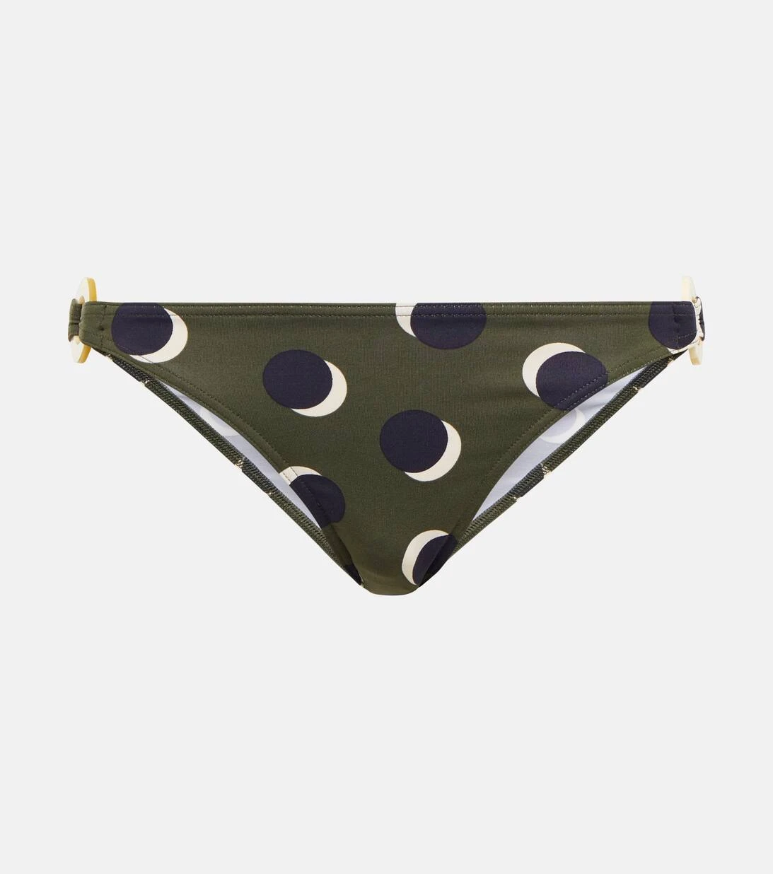 Die Swimwear von Eres besteht aus dem charakteristischen elastischen „Peau Douce“, das eine perfekte Passform garantiert. Das Brume Lune Bikini-Höschen besticht durch einen Grafik-Print und dekorative perlmuttfarbene Ringe aus Plexiglas.