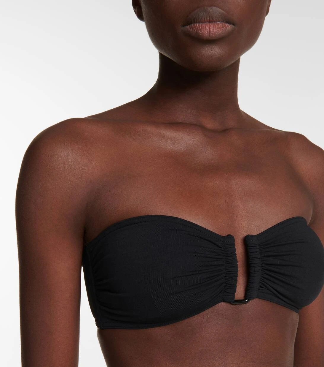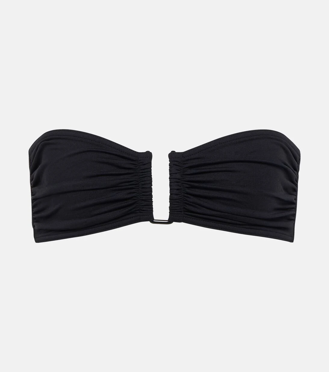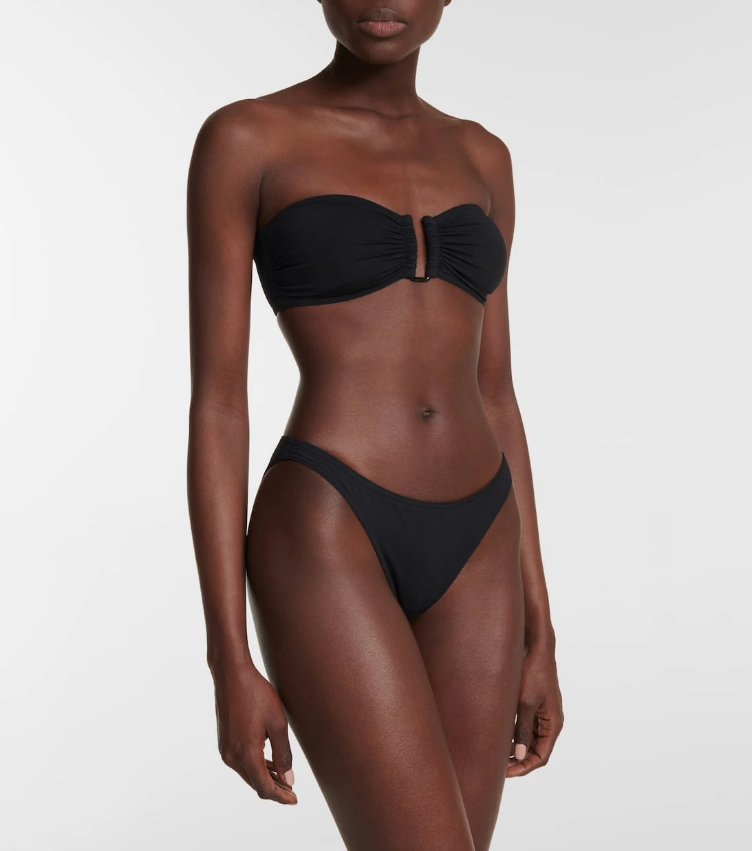 Für einen entspannten Tag am Pool wählen wir das Show Bikini-Oberteil von ERES aus. Das schwarze Design gehört zu den absoluten Essentials des Hauses und zeichnet sich durch den U-förmigen Metallbügel am Bandeau-Ausschnitt aus. Dazu besitzt das in Italien gefertigte Modell Raffungen für einen leichten Push-up-Effekt sowie rutschfeste Streifen auf der Innenseite. Tragen Sie das passende Höschen dazu.