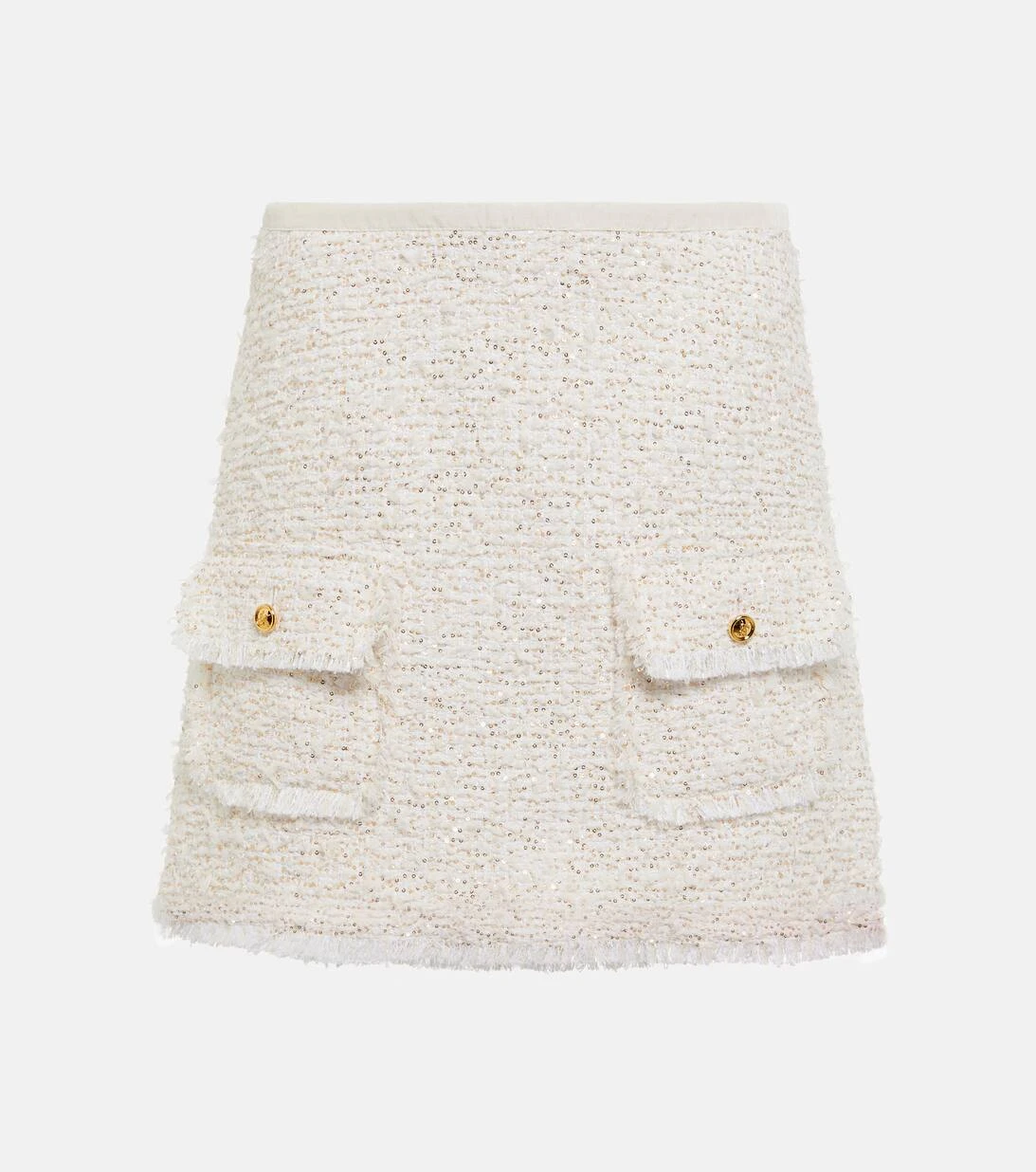 Fügen Sie Ihrer Garderobe mit diesem Minirock von Giambattista Valli einen zeitlosen Klassiker hinzu. Das High-Rise Design aus Bouclé kreiert eine schmeichelhafte Silhouette und besticht durch seine goldfarbenen Knöpfe.