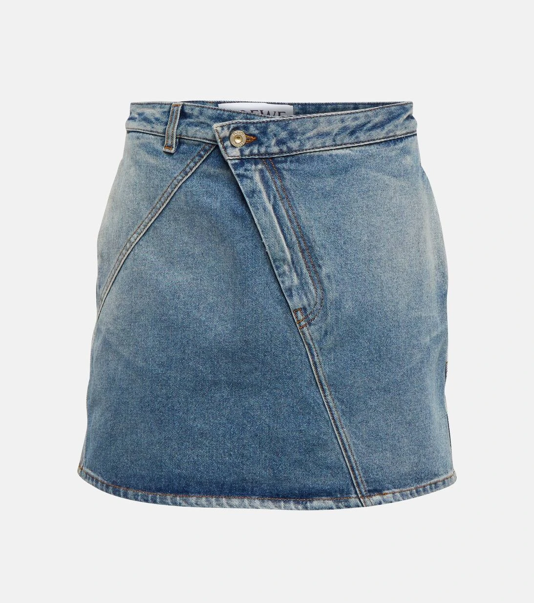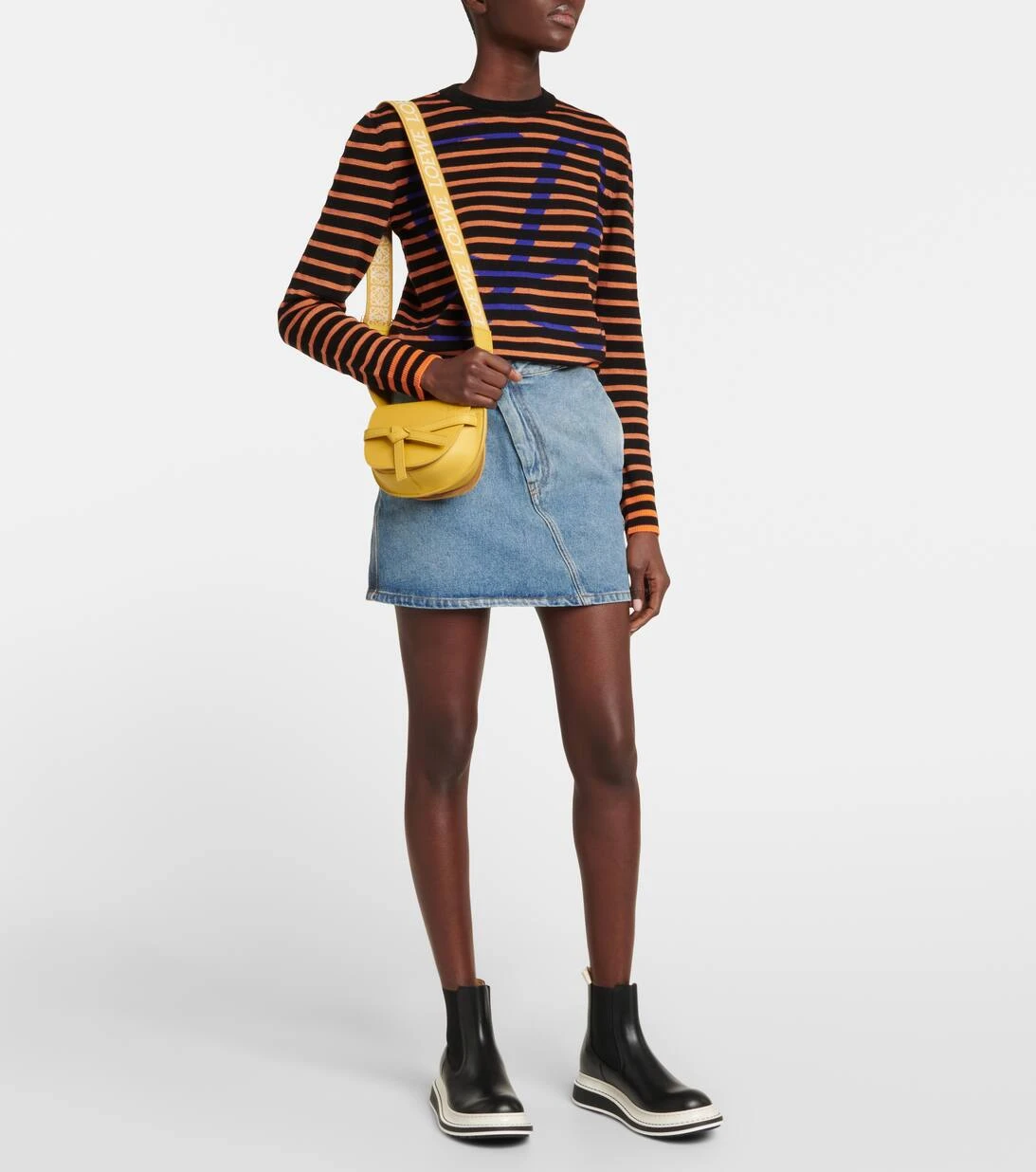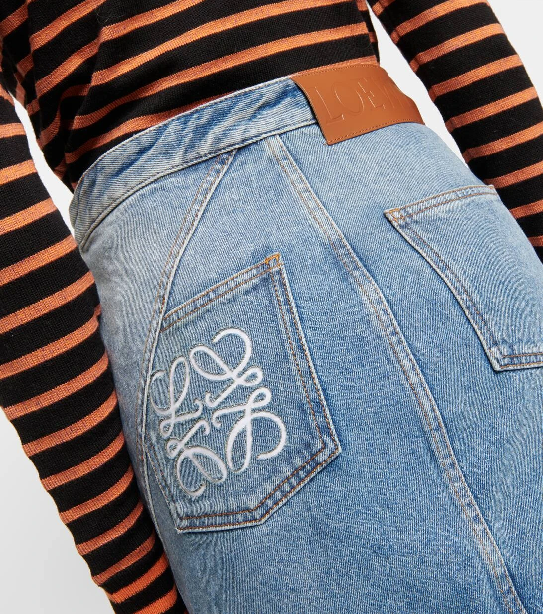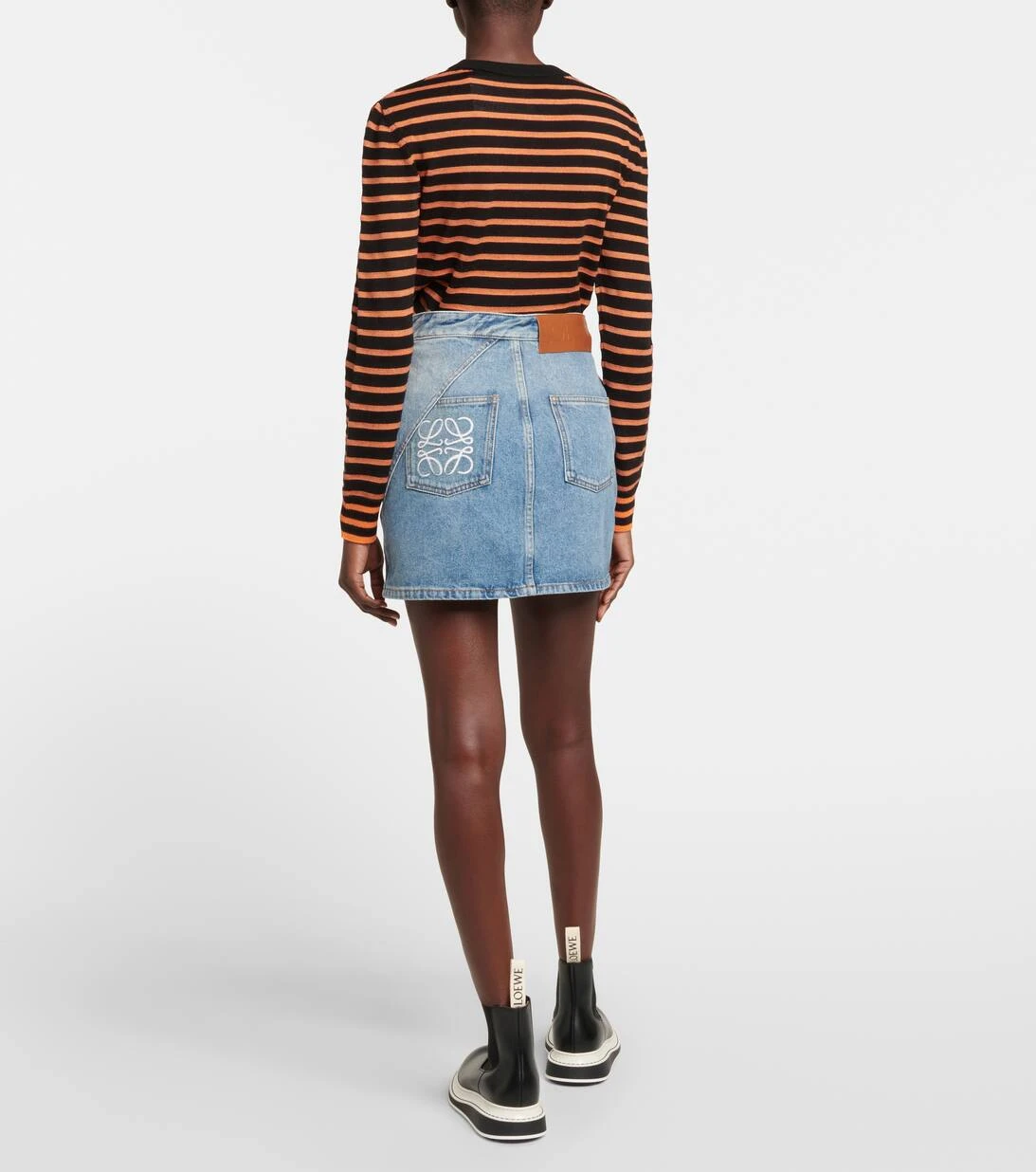 Dieser High-Rise-Minirock von Loewe wurde in Italien aus Baumwoll-Denim gefertigt und setzt sich mit einem schrägen Reißverschluss und Knopfverschluss in Szene. Er ist mit einem geprägten Logo-Aufnäher aus Leder und einer Anagramm-Stickerei auf der Rückseite verziert.