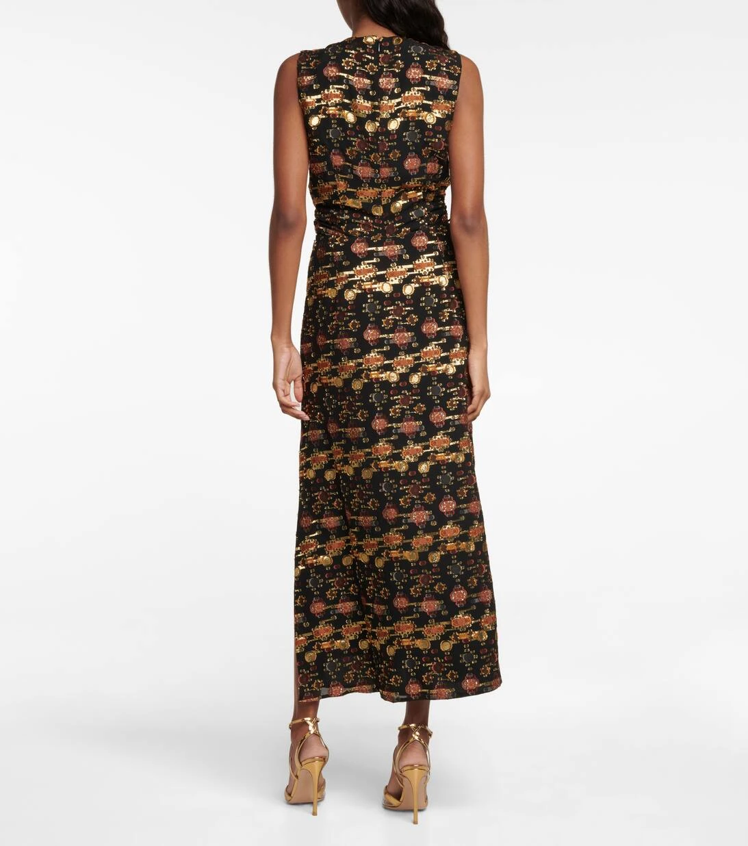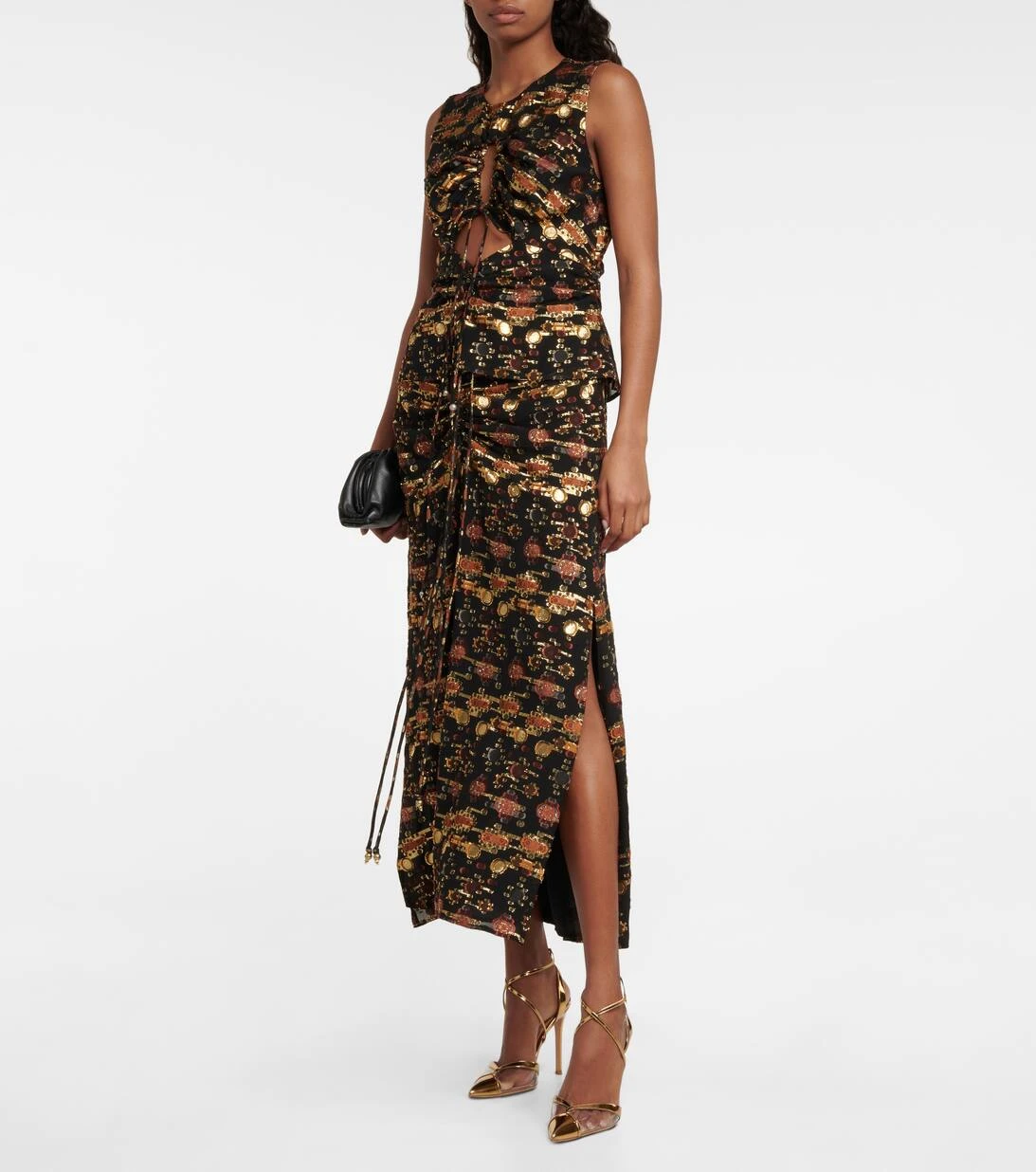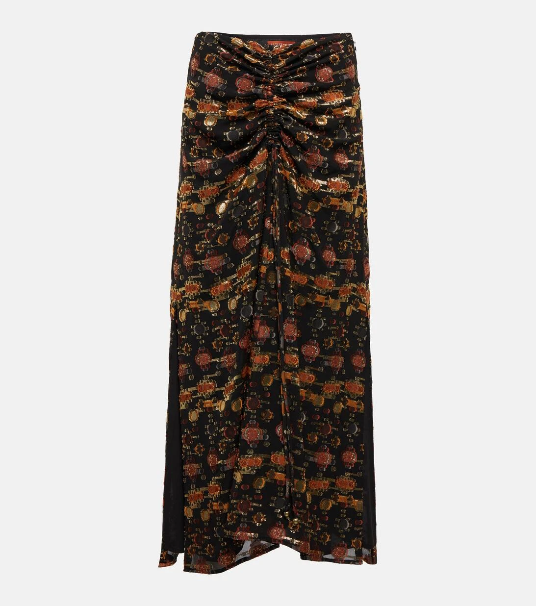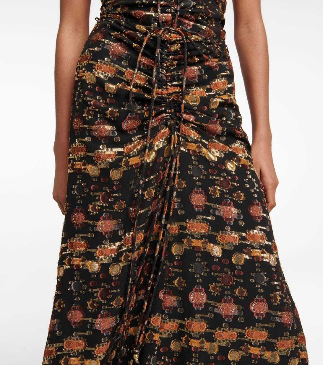 Verleihen Sie Ihrer Garderobe mit dem Safia Maxirock von Altuzarra modernes Boho-Flair. Aus glänzendem Satin in Italien gefertigt, präsentiert sich das Design mit einem abstrakten Muster in warmen Farbtönen, das von Metallic-Garnen stilvoll akzentuiert wird.