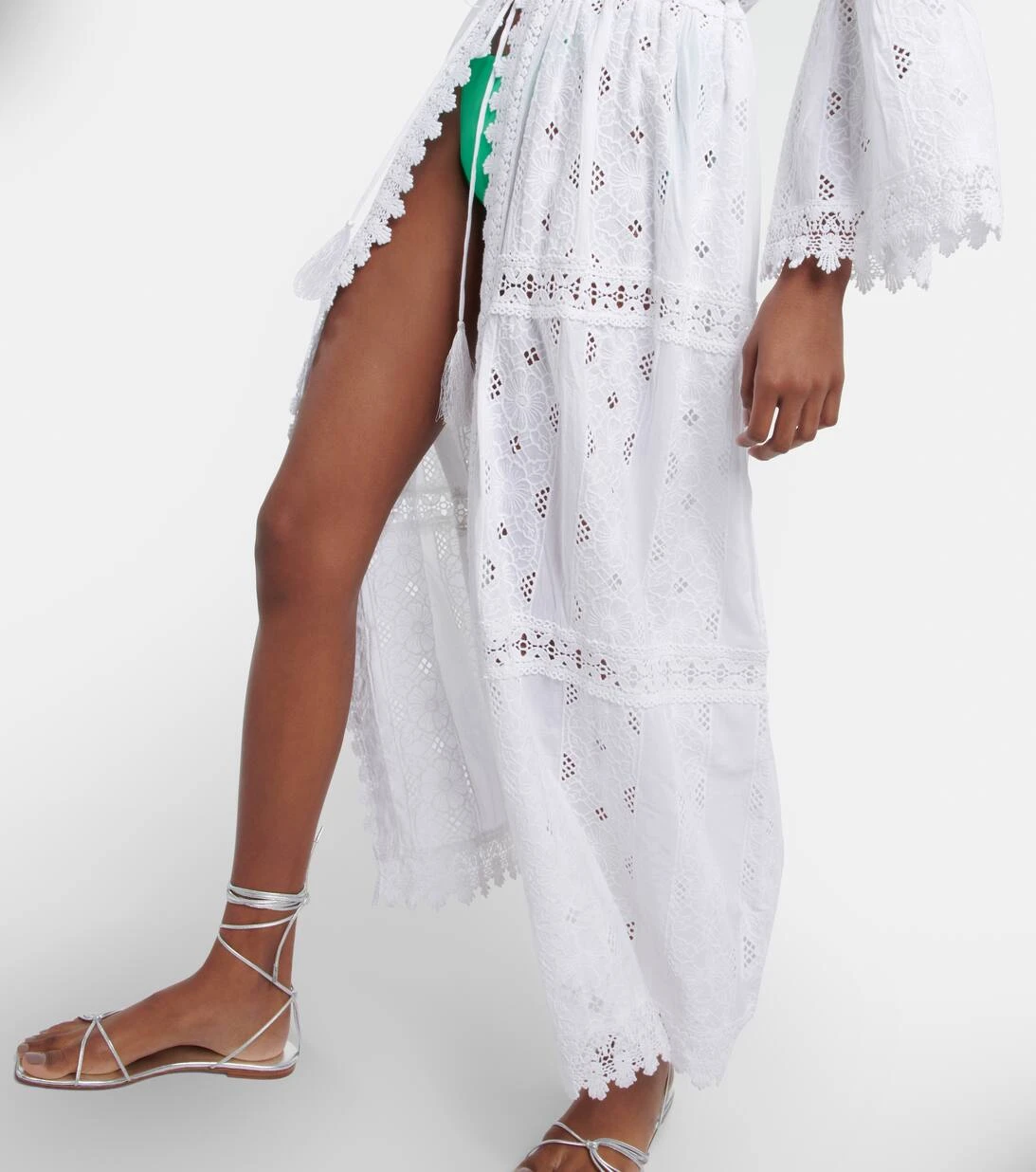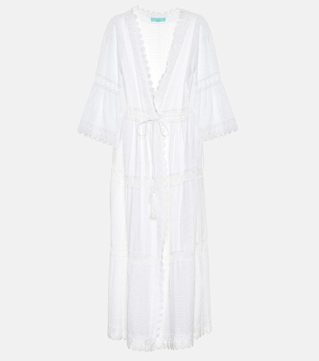 Als lässigen Überwurf wollen wir auf den Robbi Kaftan von Melissa Odabash nicht verzichten. Das weiße Design aus leichtgewichtiger Baumwolle ist mit gehäkelten Partien und einem Muschelsaum akzentuiert. Kurze Trompetenärmel und Troddeln am Gürtel unterstreichen den Boho-Chic des Styles. Tragen Sie es über Ihre Bikinis.