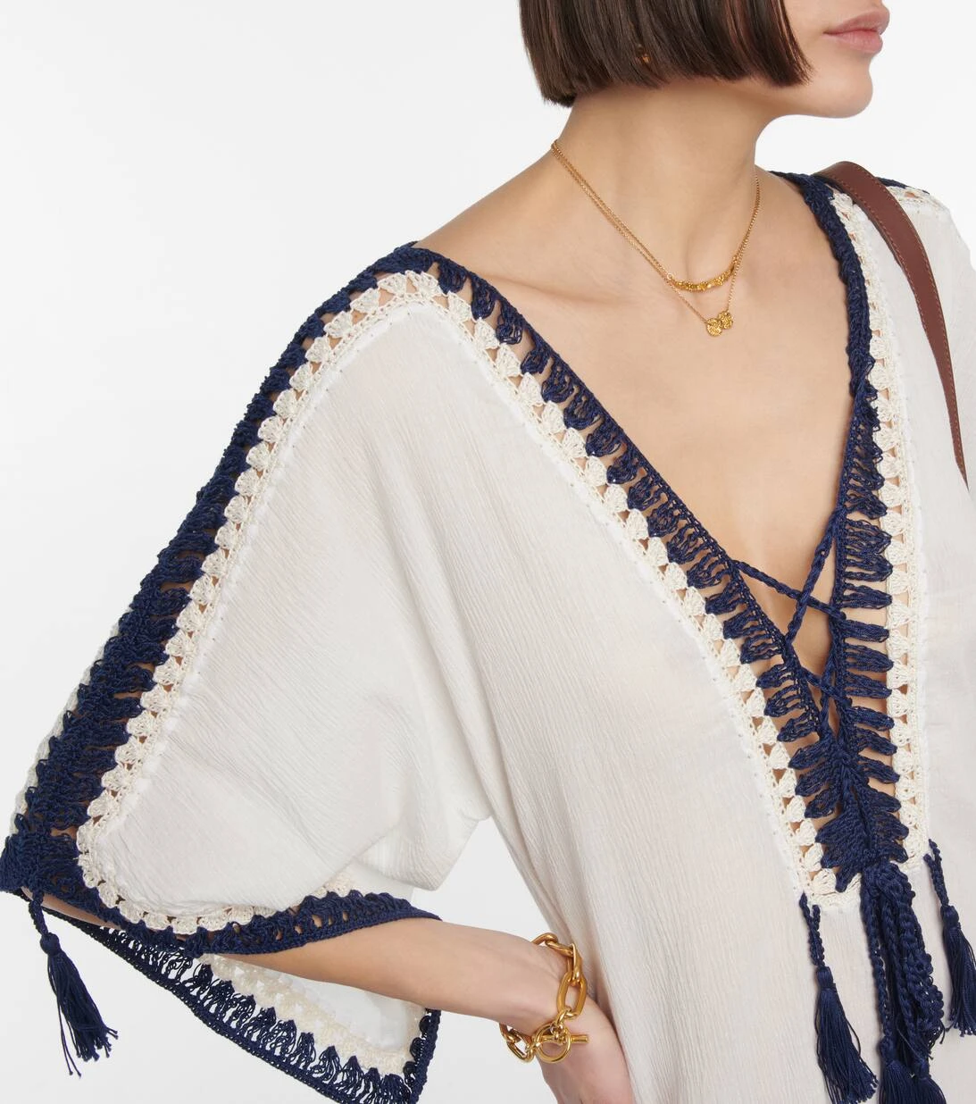 Dieses Midikleid von Anna Kosturova wurde aus Baumwolle mit offen gestrickten Details gefertigt und mit Troddeln akzentuiert.