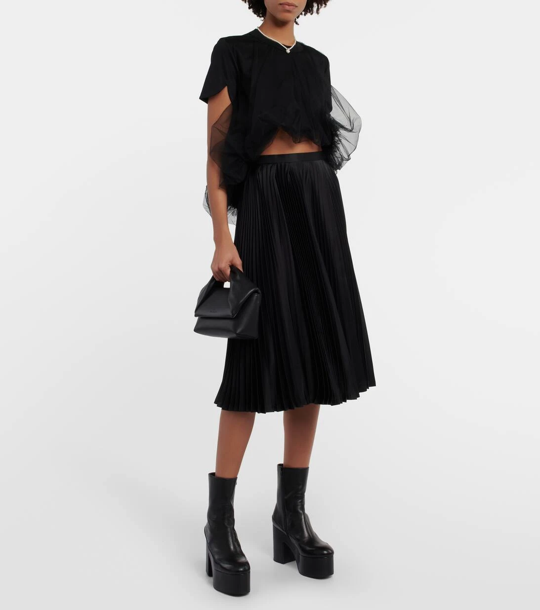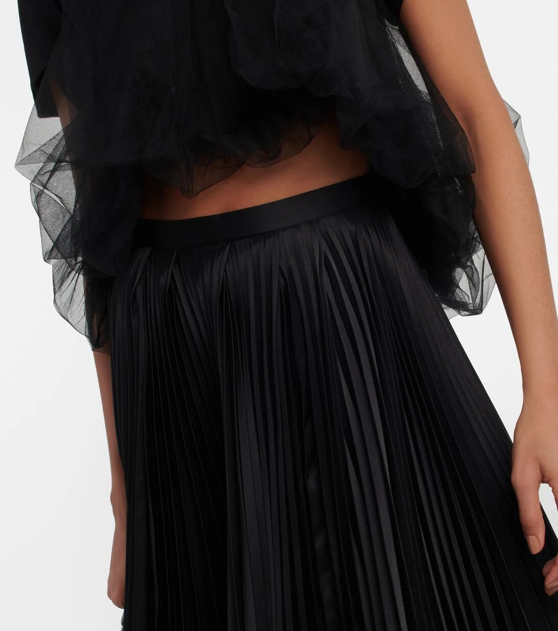 Dieser Midirock von Noir Kei Ninomiya aus glänzendem Satin zeichnet sich durch eine hohe Taille und akkurat gelegte Falten aus, die für eine stylische, voluminöse Silhouette sorgen.
