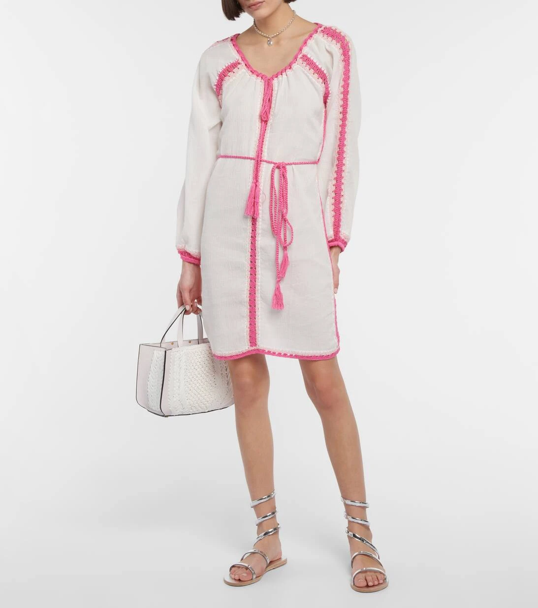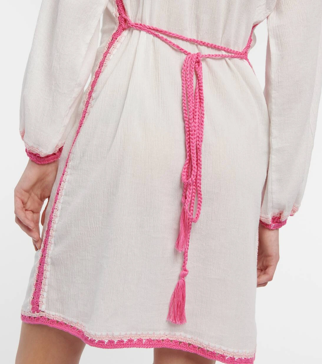 Dieses Minikleid von Anna Kosturova ist der perfekte Style für den Strand. Es wurde aus Baumwolle gefertigt und mit offen gestrickten Details sowie rosafarbenen Troddeln versehen.
