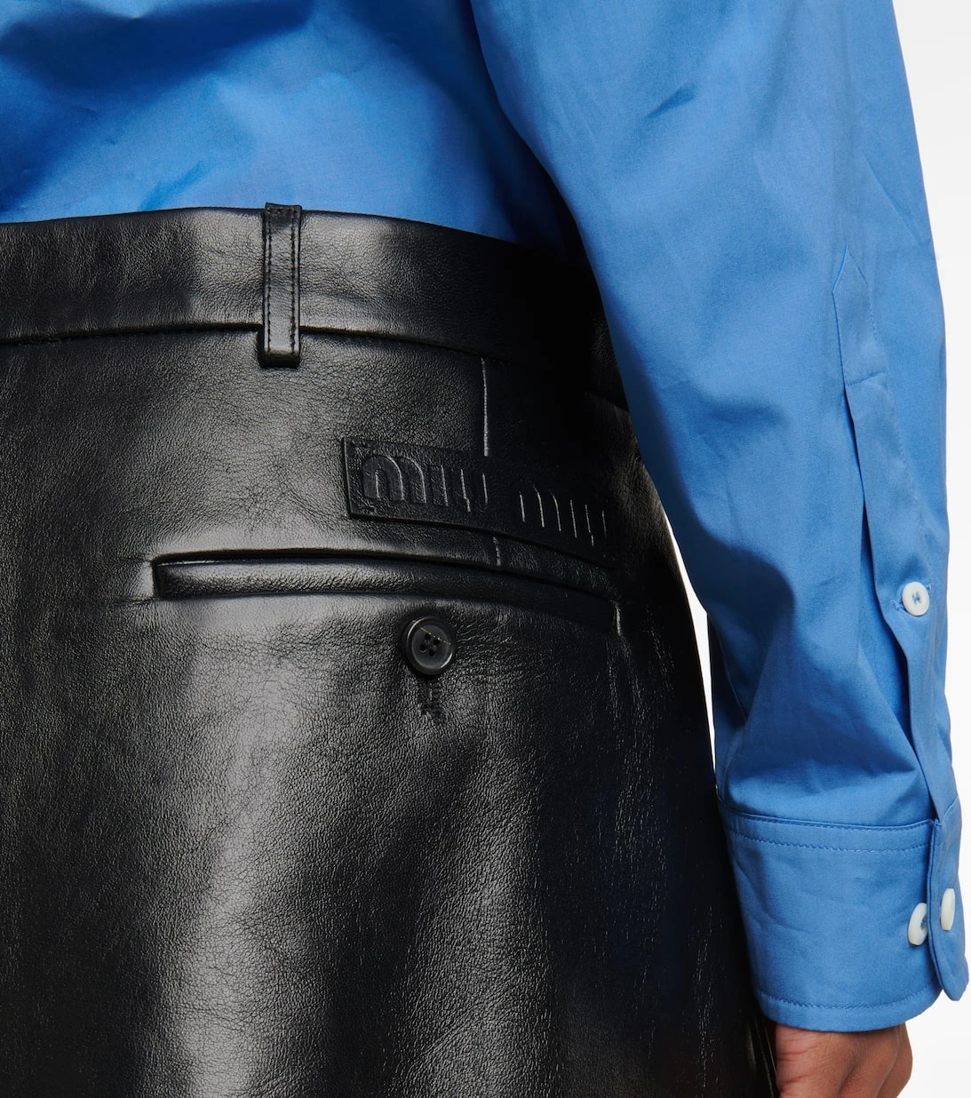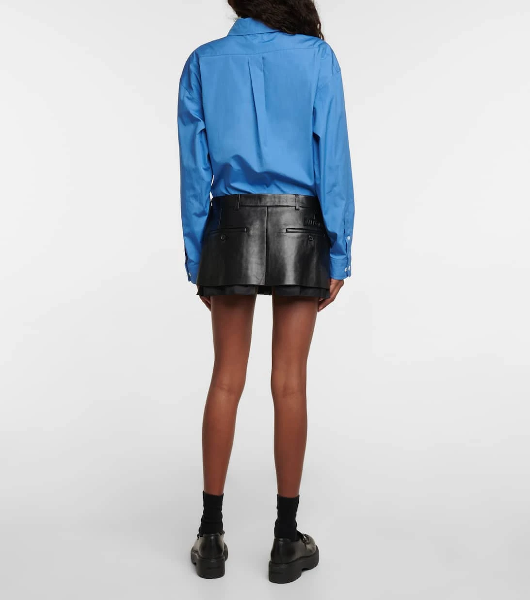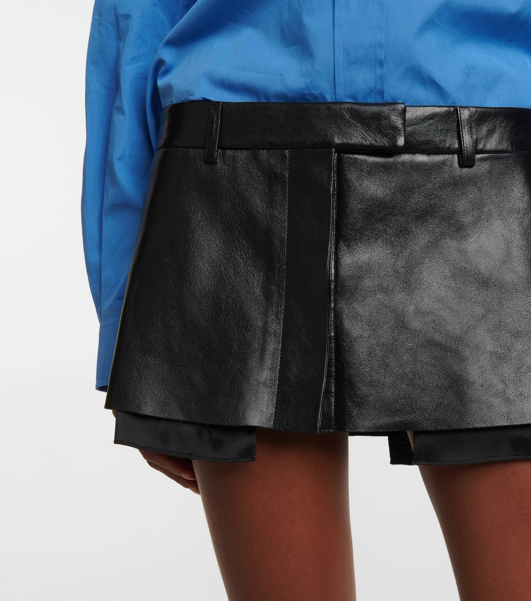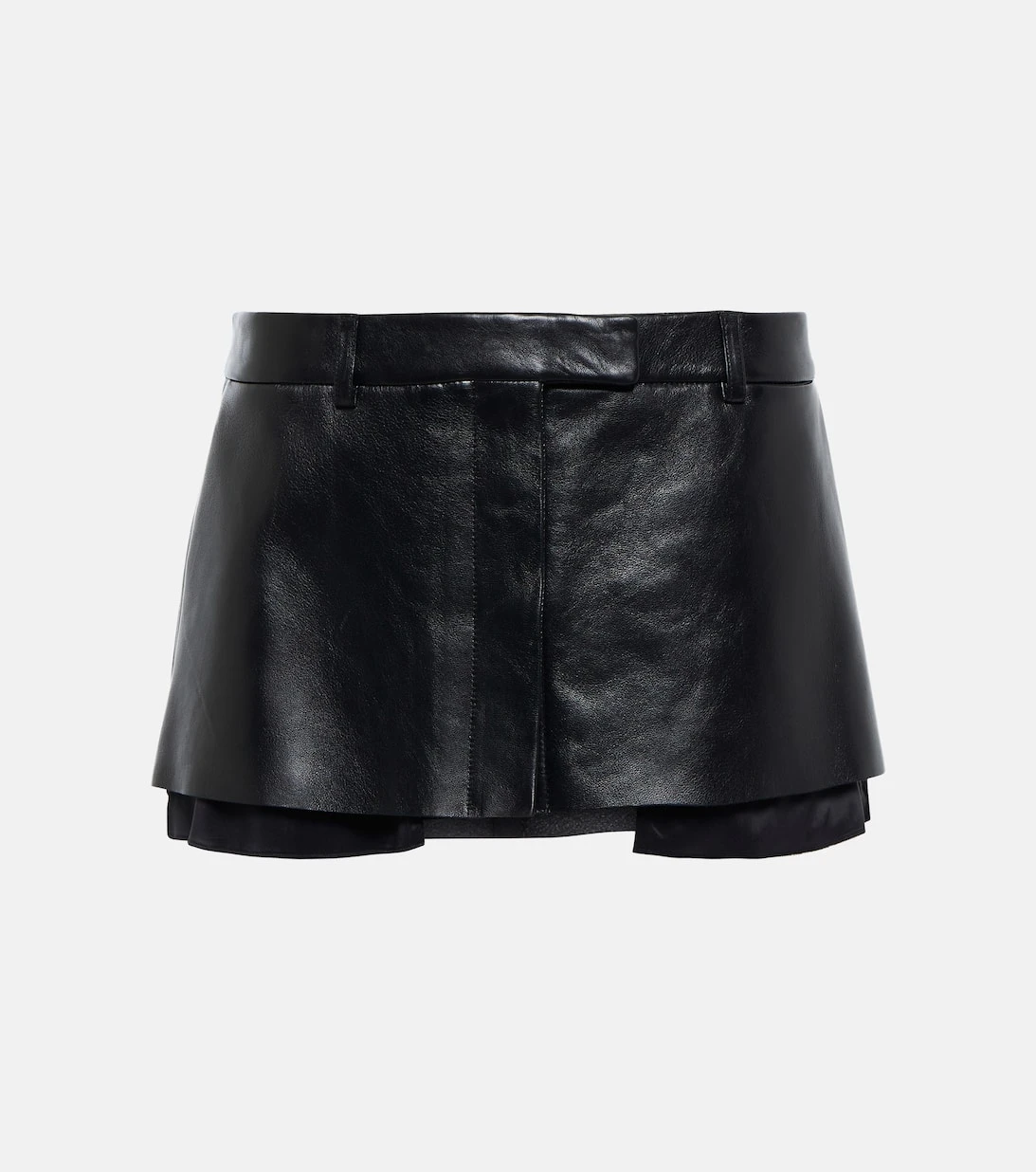 Dieser Minirock von Miu Miu verkörpert die Rückkehr zu Trends der 00er-Jahre in Perfektion. Das Modell wurde aus weichem Lammleder gefertigt und hat eine sehr kurze Low-Rise-Silhouette, die Teile des Futters zeigt.