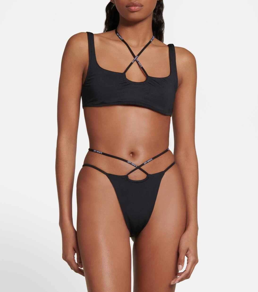 Der Cross Coulisse Bikini von Off-White hat ein Design mit Bindebändern, das am Pool für viel Eindruck sorgt. Das Top verfügt über einen weiten Ausschnitt, während das Höschen eine minimale Bedeckung bietet.