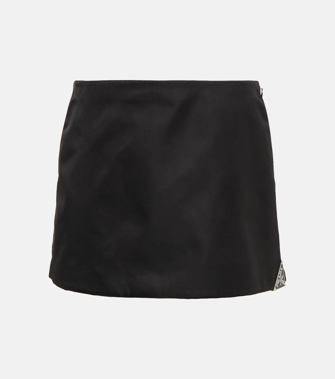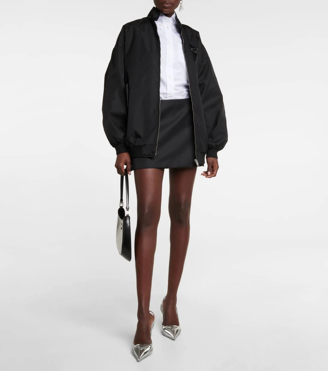 Dieser Minirock der neuesten Kollektion von Prada zeichnet sich durch das legendäre dreieckige Logo am Saum aus. Er wurde komplett aus Re-Nylon gefertigt – eine nachhaltige Interpretation des charakteristischen Stoffs der Marke.
