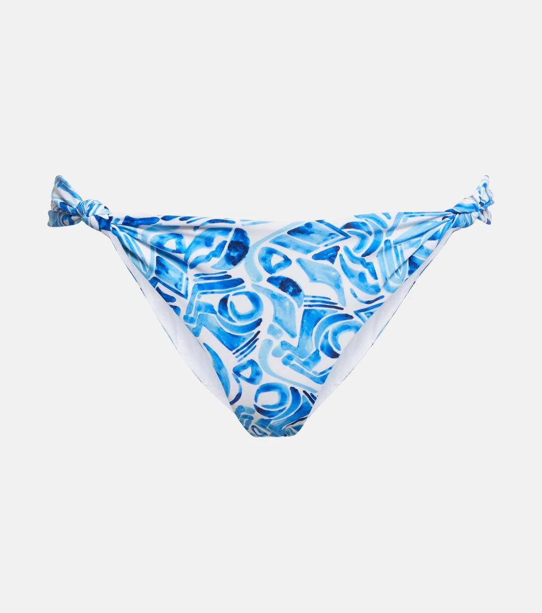 Das Seine Bikini-Höschen von Rebecca Vallance ist ein Low-Rise-Modell, das moderate Bedeckung bietet. Das Design zeigt sich mit einem leuchtenden Print und schmeichelnden Knotendetails an den Seiten.