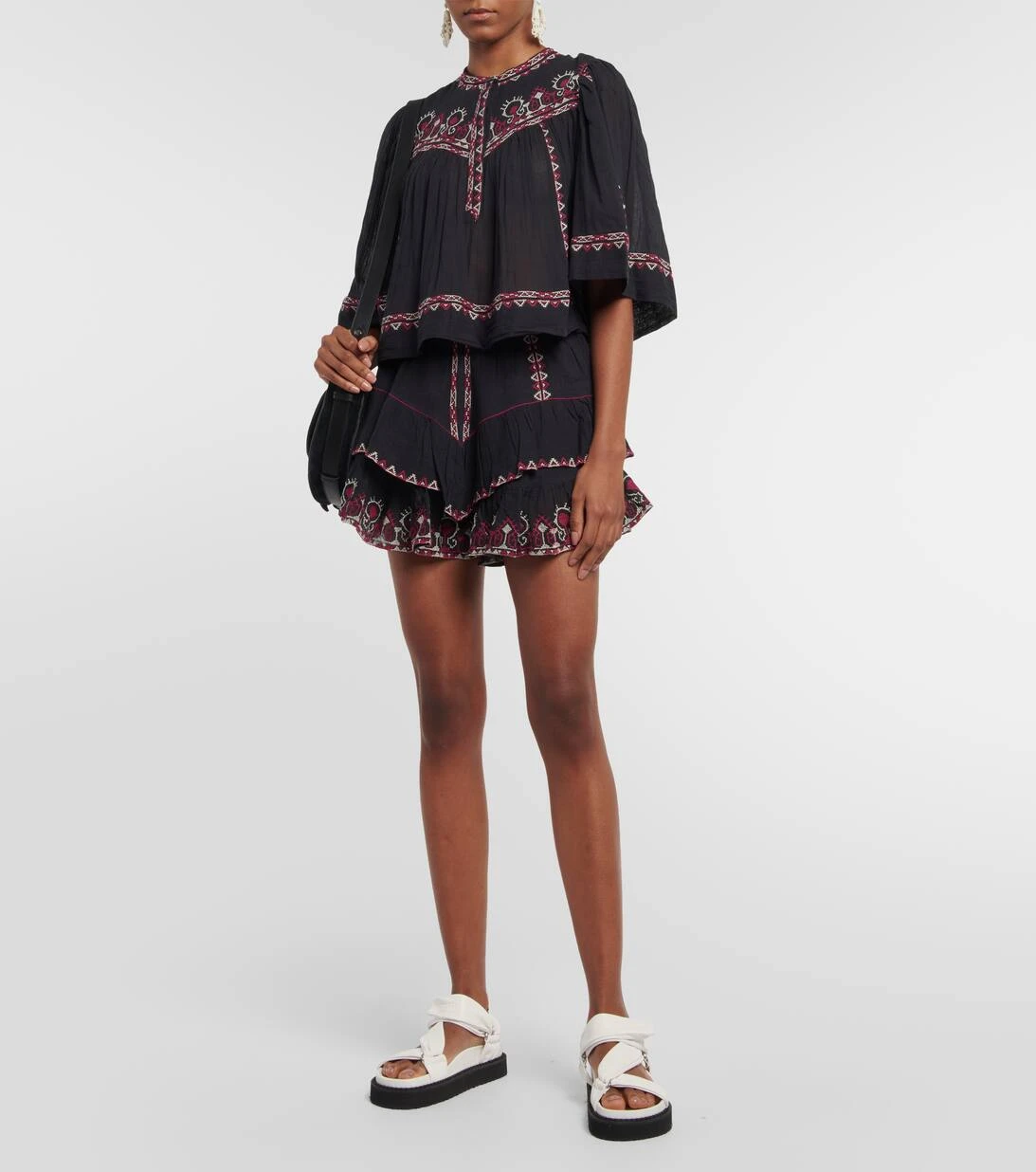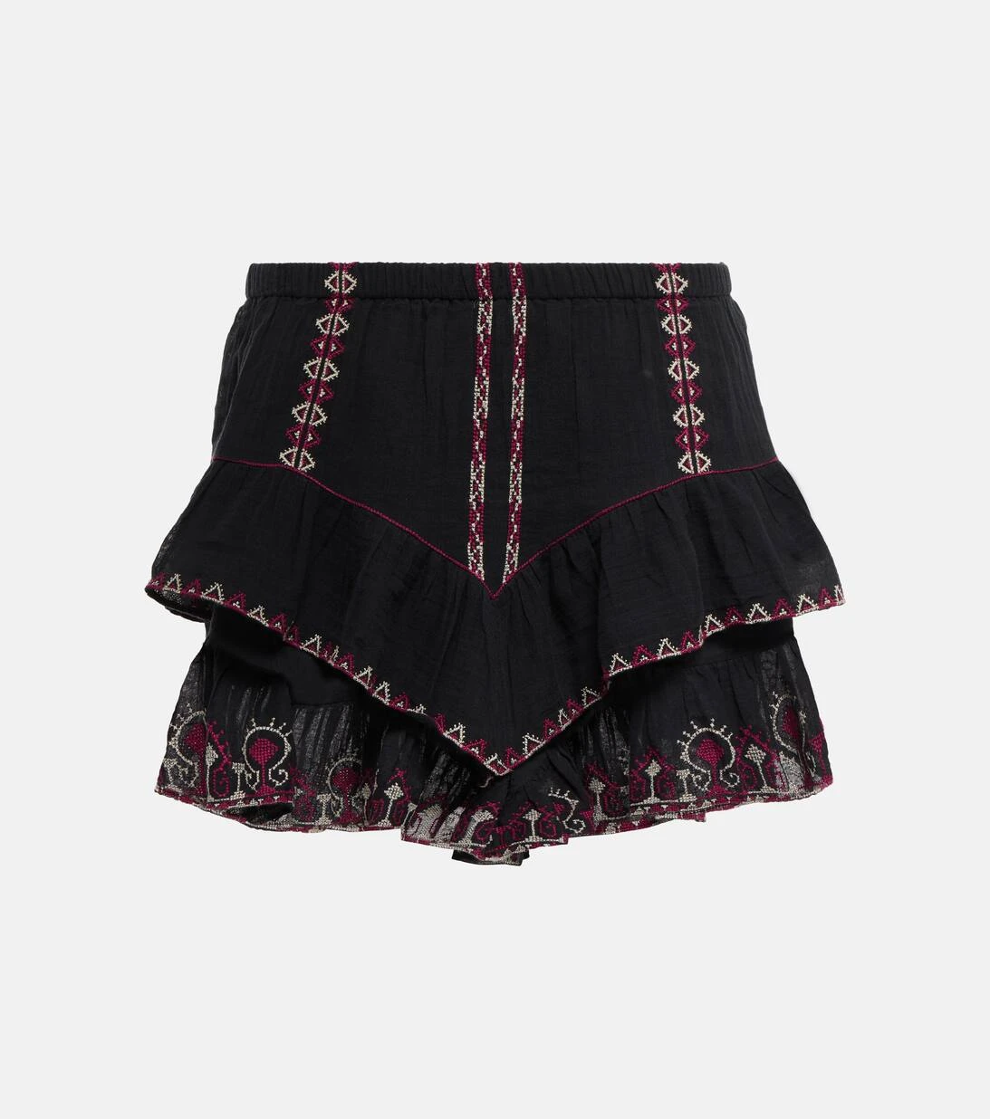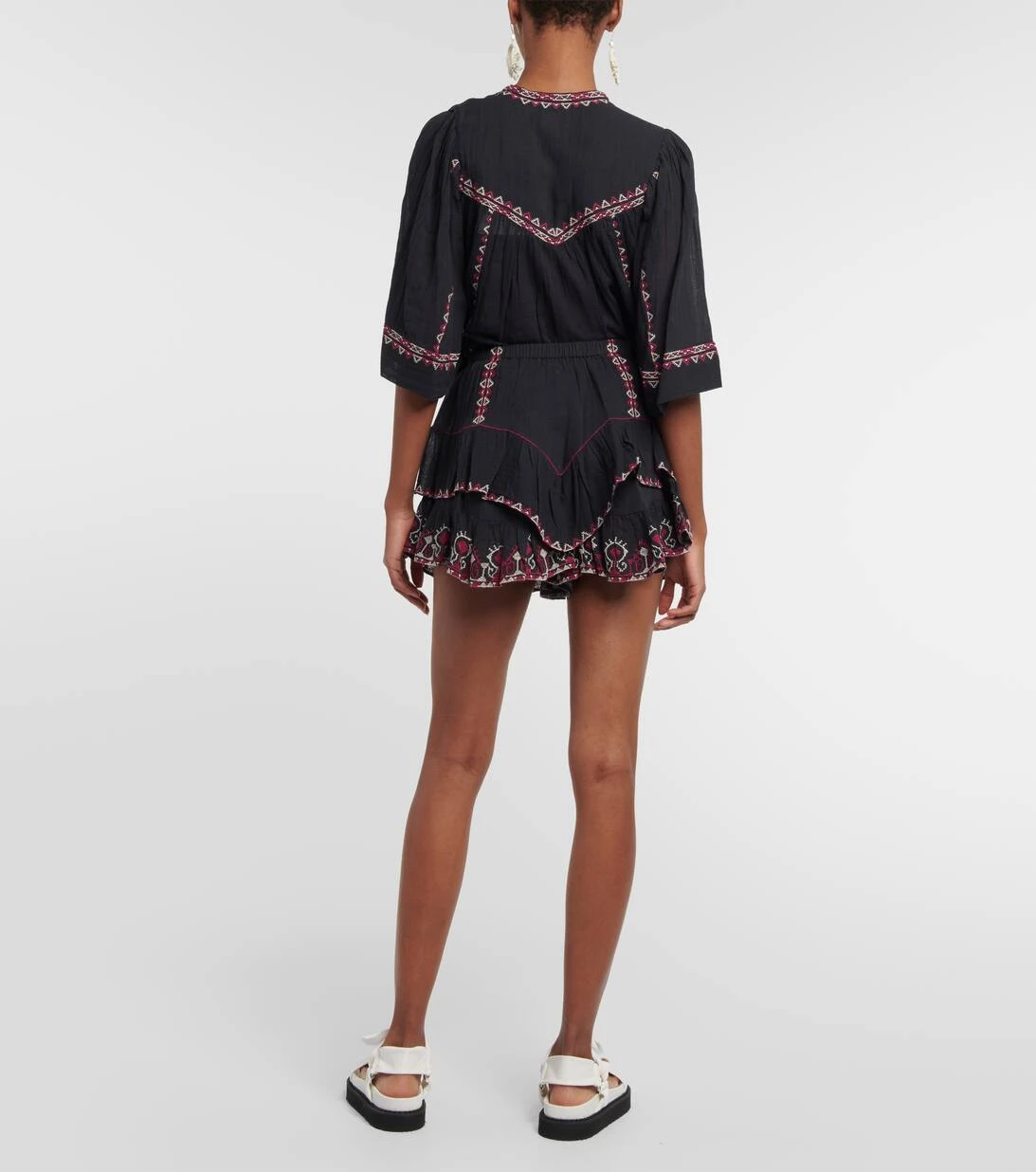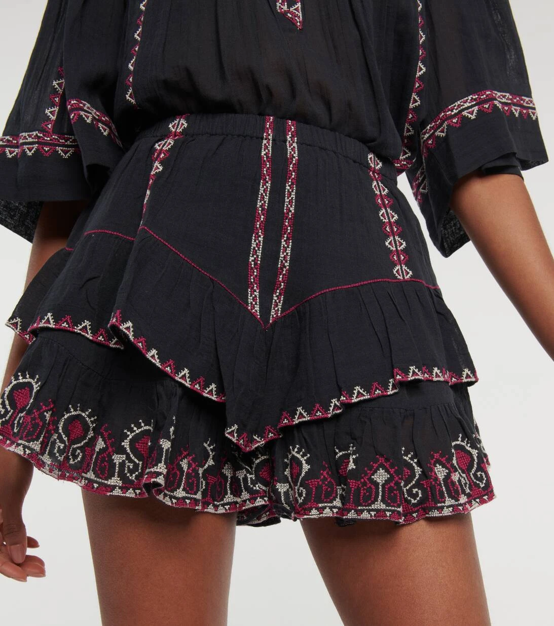 Die Jocadia Shorts von Marant Etoile wurden aus reiner Baumwolle in einem High-Rise Style mit elastischem Bund gefertigt. Gerüschte Besätze und eine mehrlagige Verarbeitung verleihen dem tonalen Design zusätzliche Dimension.