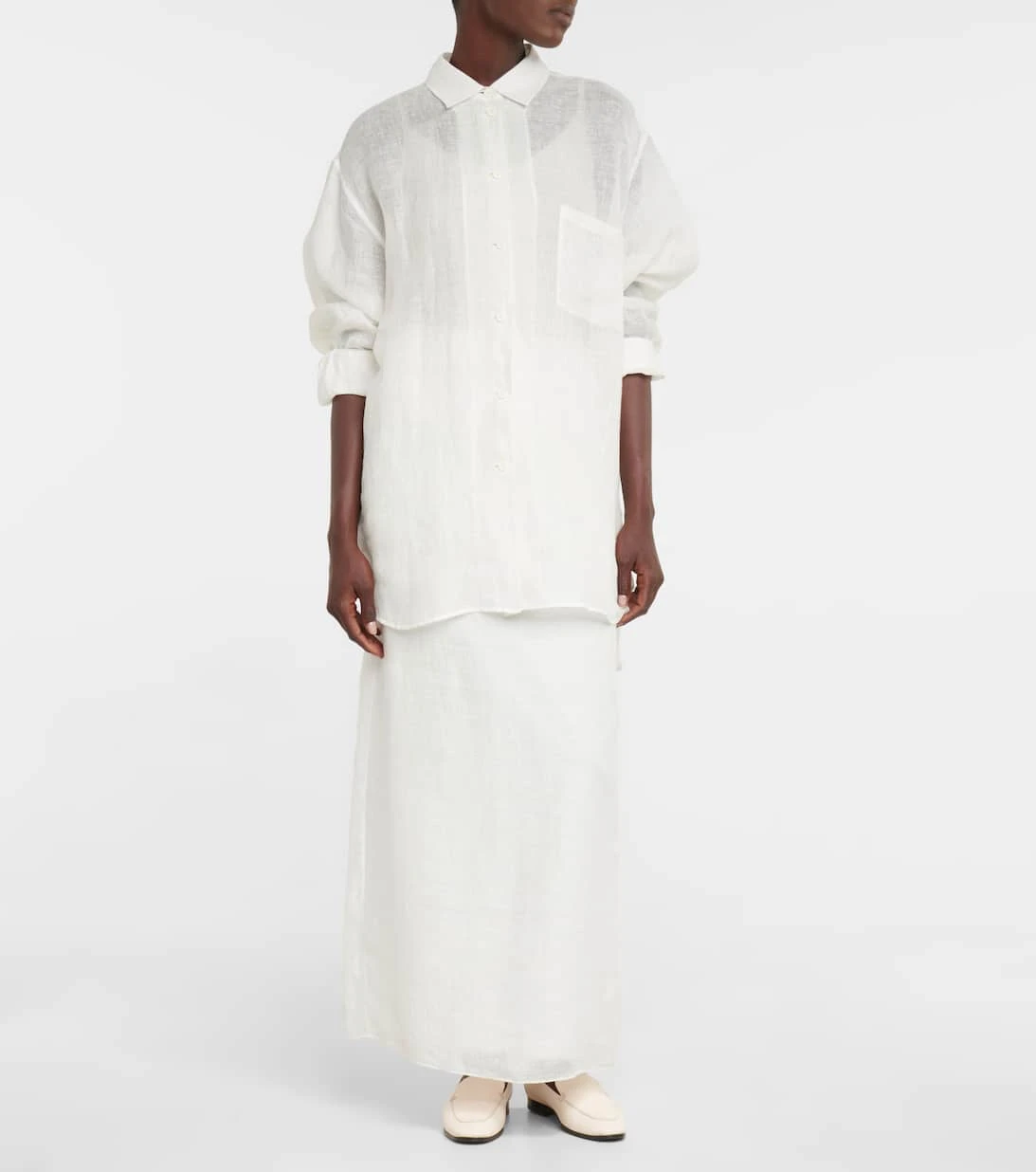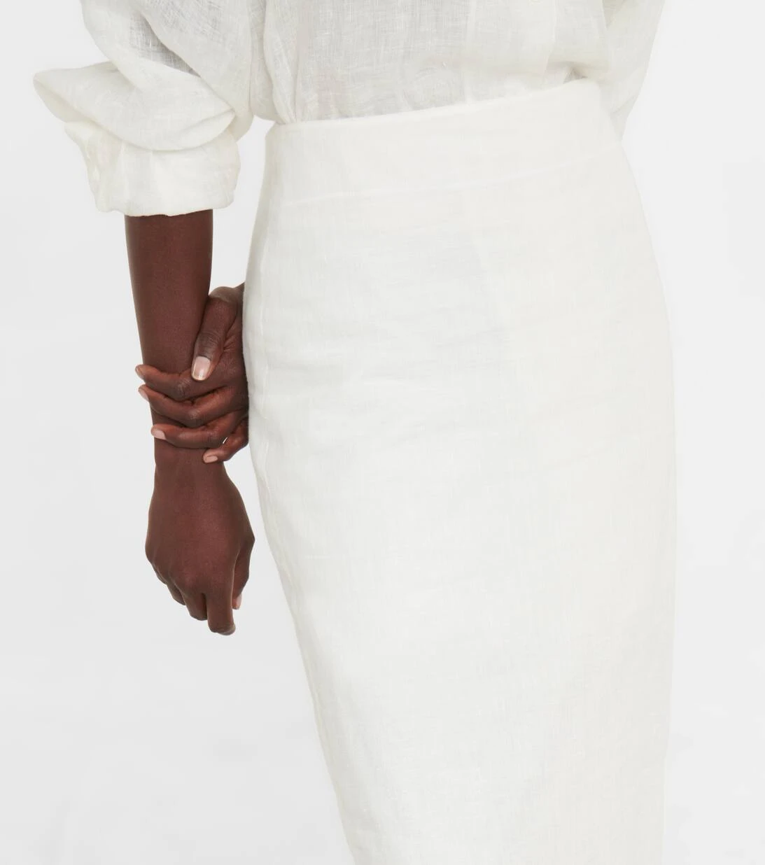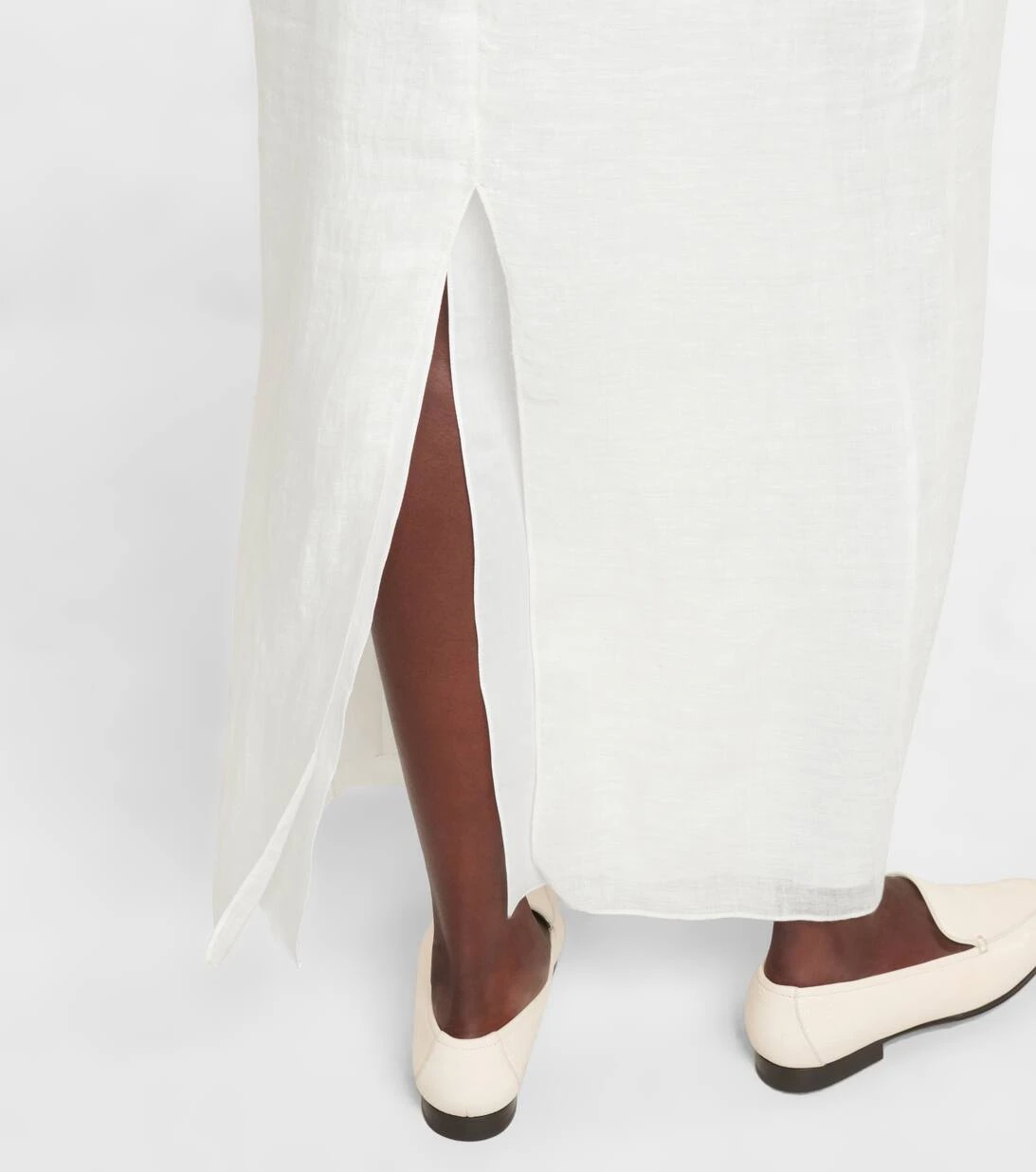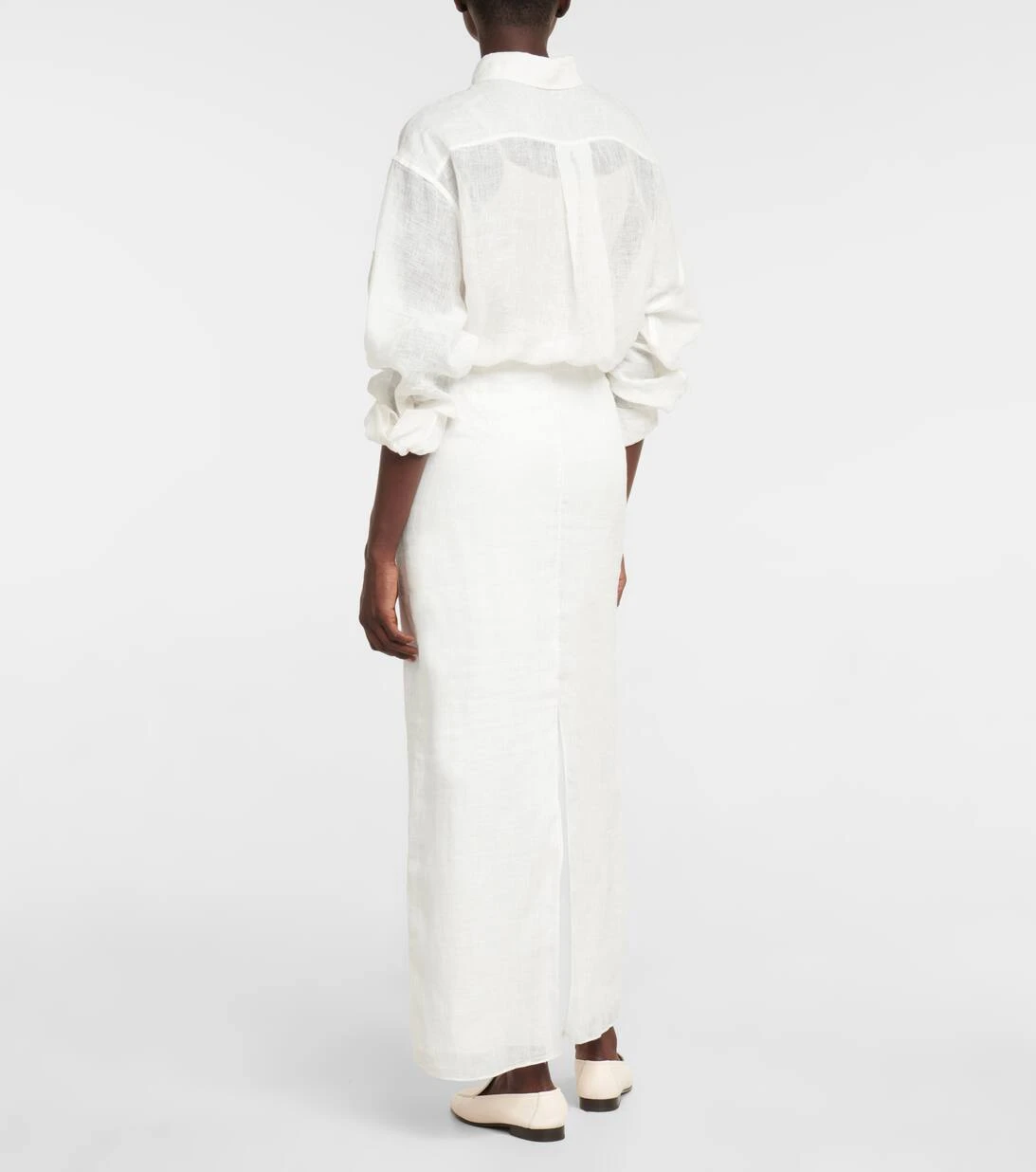 The Row steht für mühelose Eleganz. Der Berth Maxirock aus leichtem Leinen hat eine hohe Taille und einen Schlitz auf der Rückseite für mehr Bewegungsfreiheit.
