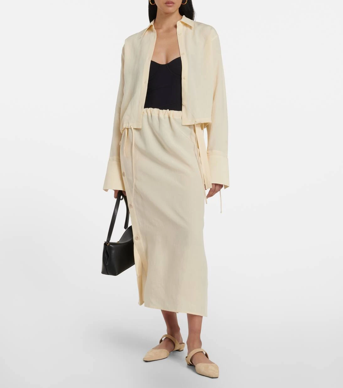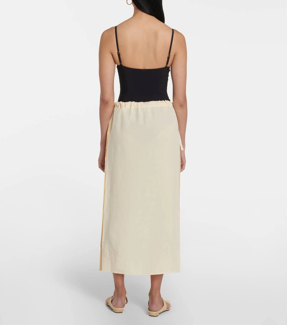 Dieser Maxirock von Totême steht für Stil und Komfort. Das Modell aus einem Leinengemisch verfügt über einen Bund mit Kordelzug sowie Knopfverschlüsse an beiden Seiten.
