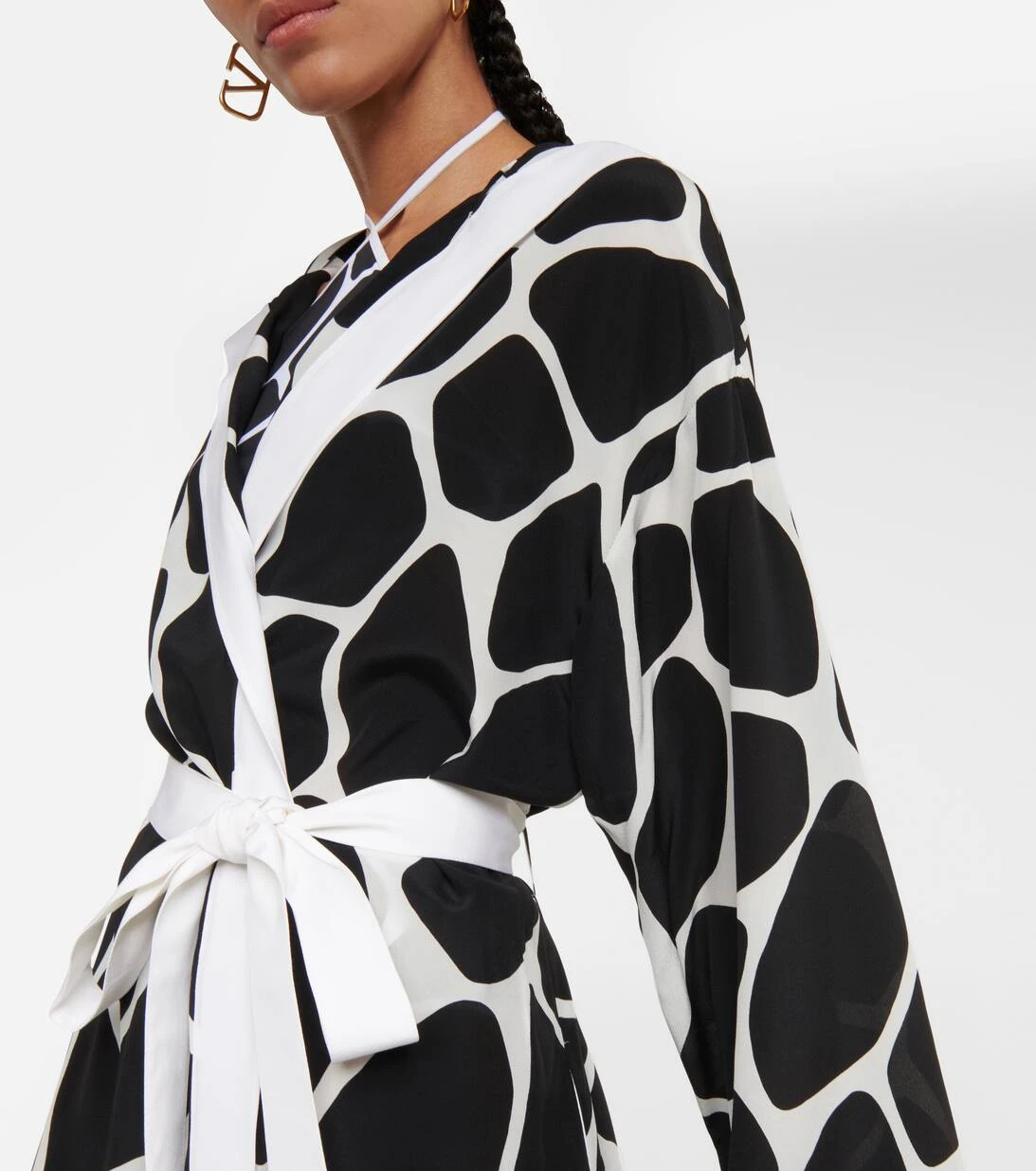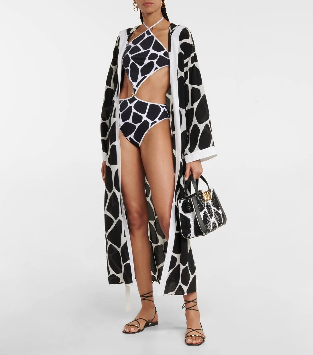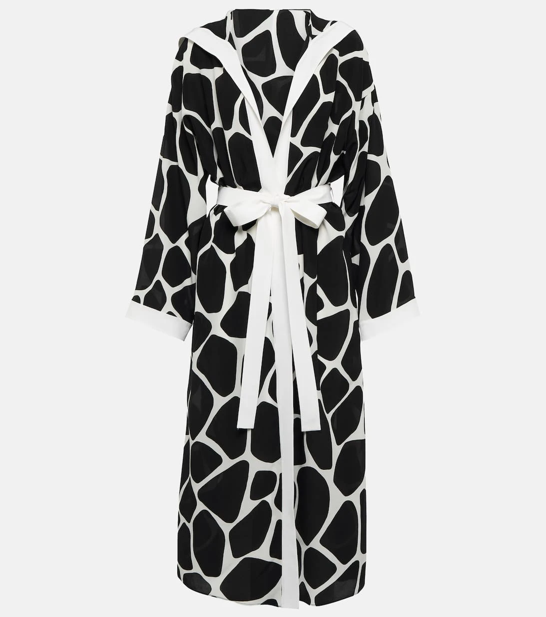 Valentinos exklusive Escape Capsule Collection für Mytheresa präsentiert Styles, die wie geschaffen für einen unvergesslichen Sommer sind. Dieser Morgenmantel wurde aus Seide gefertigt und mit dem schwarz-weißen Giraffa Re-Edition-Print akzentuiert.