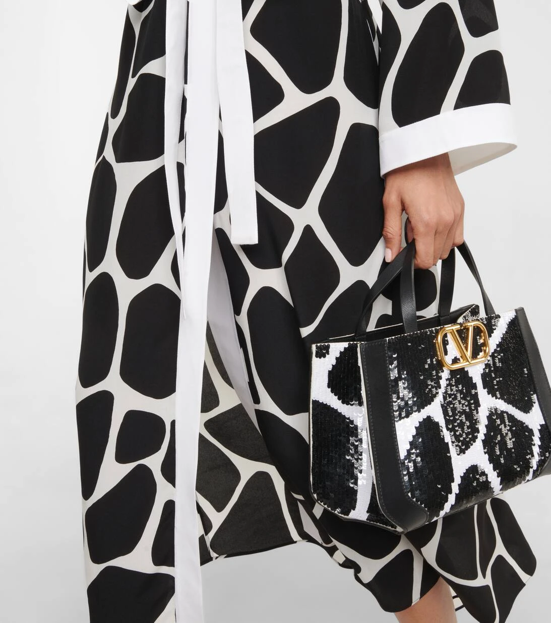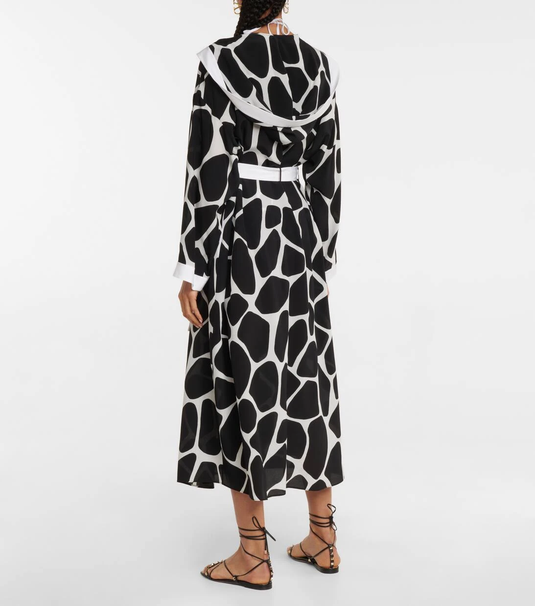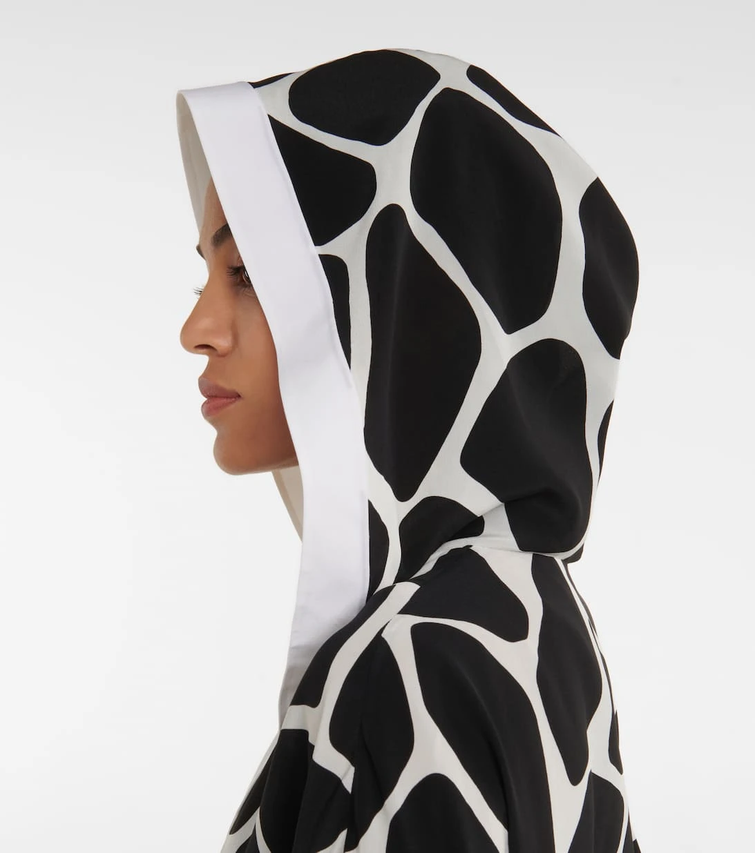 Valentinos exklusive Escape Capsule Collection für Mytheresa präsentiert Styles, die wie geschaffen für einen unvergesslichen Sommer sind. Dieser Morgenmantel wurde aus Seide gefertigt und mit dem schwarz-weißen Giraffa Re-Edition-Print akzentuiert.
