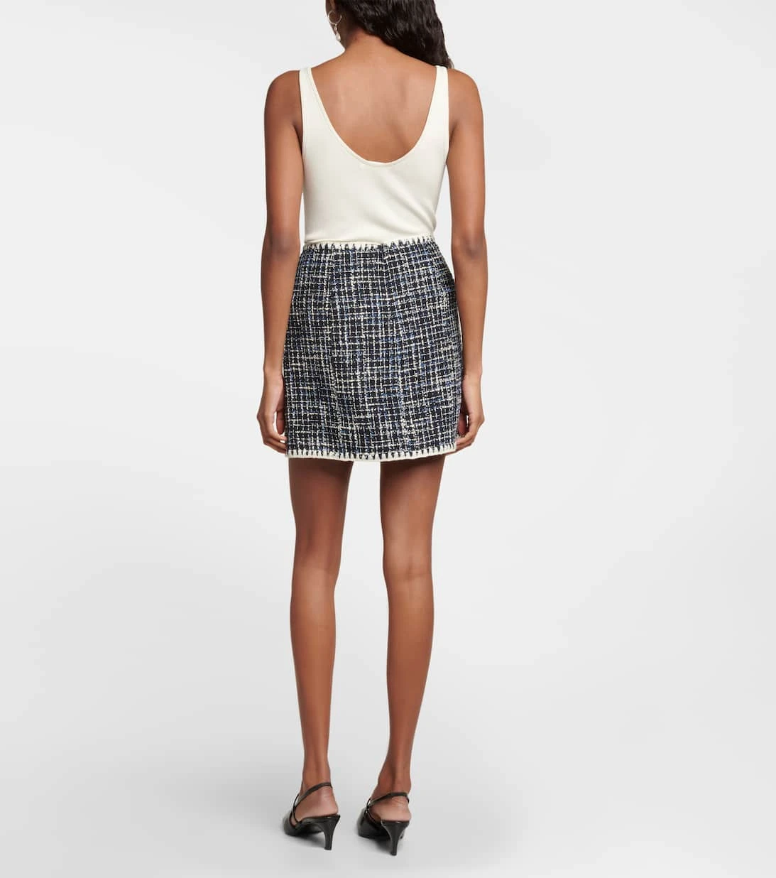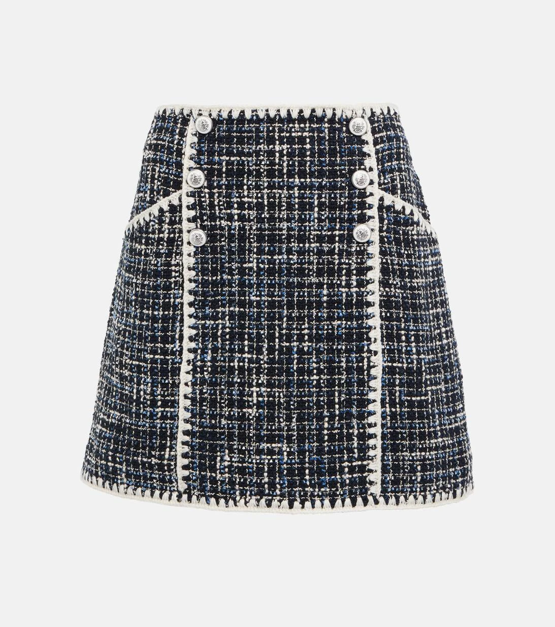Der Medford Minirock von Veronica Beard wurde aus Tweed aus einem Baumwollgemisch gefertigt. Das vollständig gefütterte Design wird von Knopfakzenten und weißen Kontrastdetails an allen Kanten abgerundet. Tragen Sie dazu die passende Bosea Jacke.