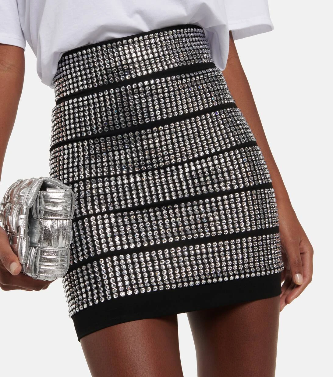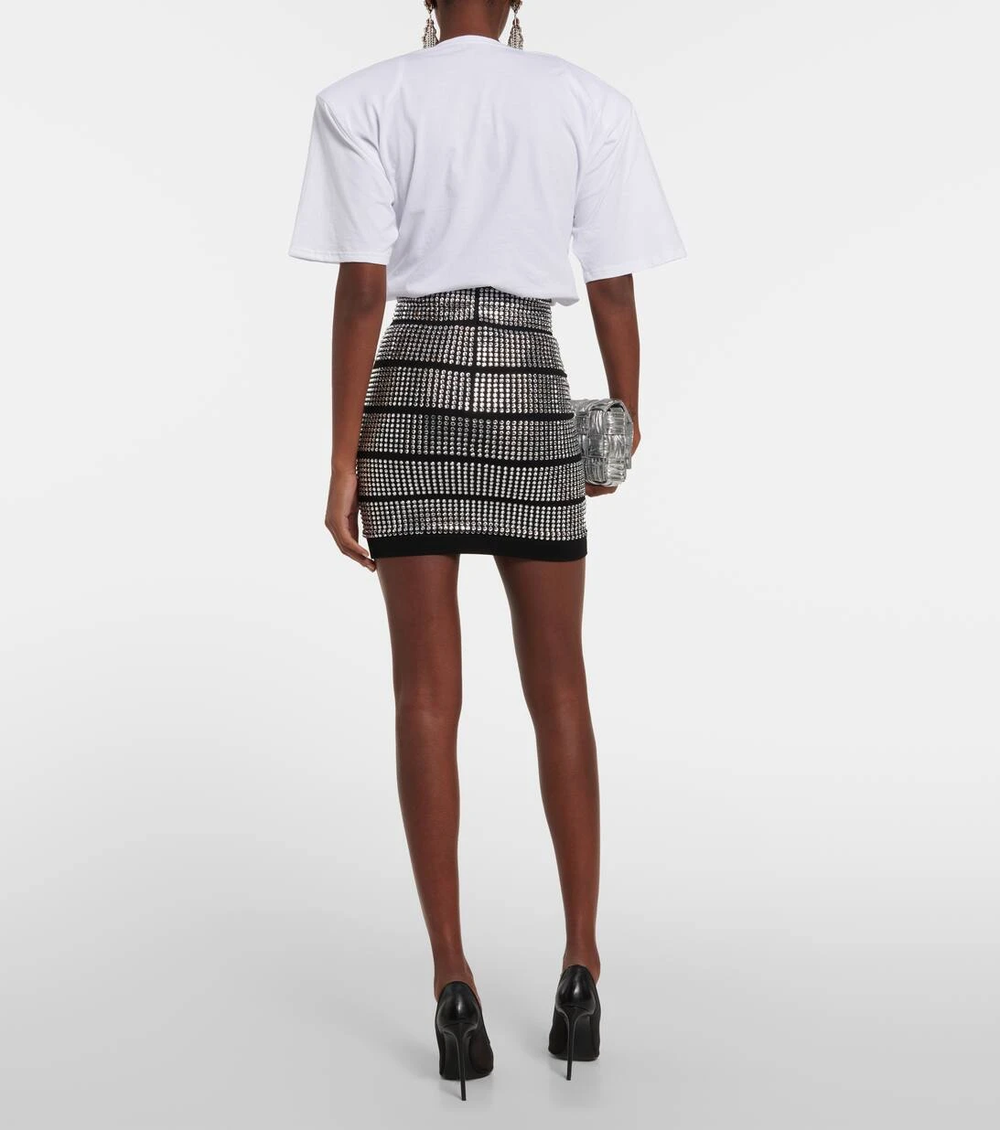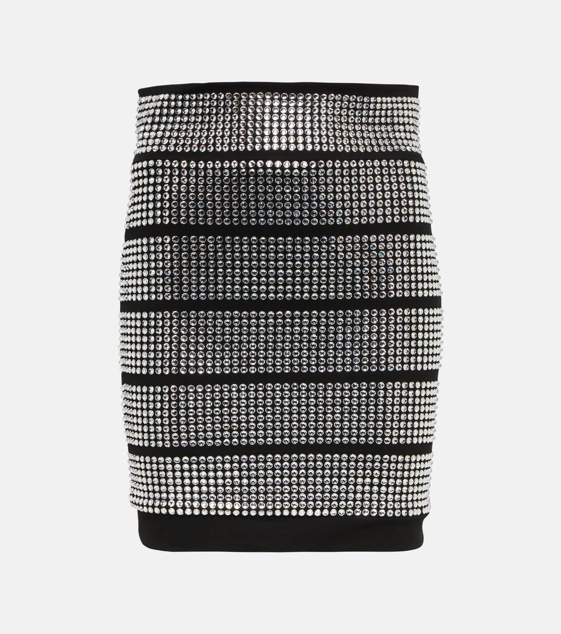 Dieser Minirock von Alexandre Vauthier wurde aus Jersey gefertigt und mit funkelnden Kristallverzierungen versehen. Das Design verfügt über eine figurbetonte Passform und eine hohe Taille.