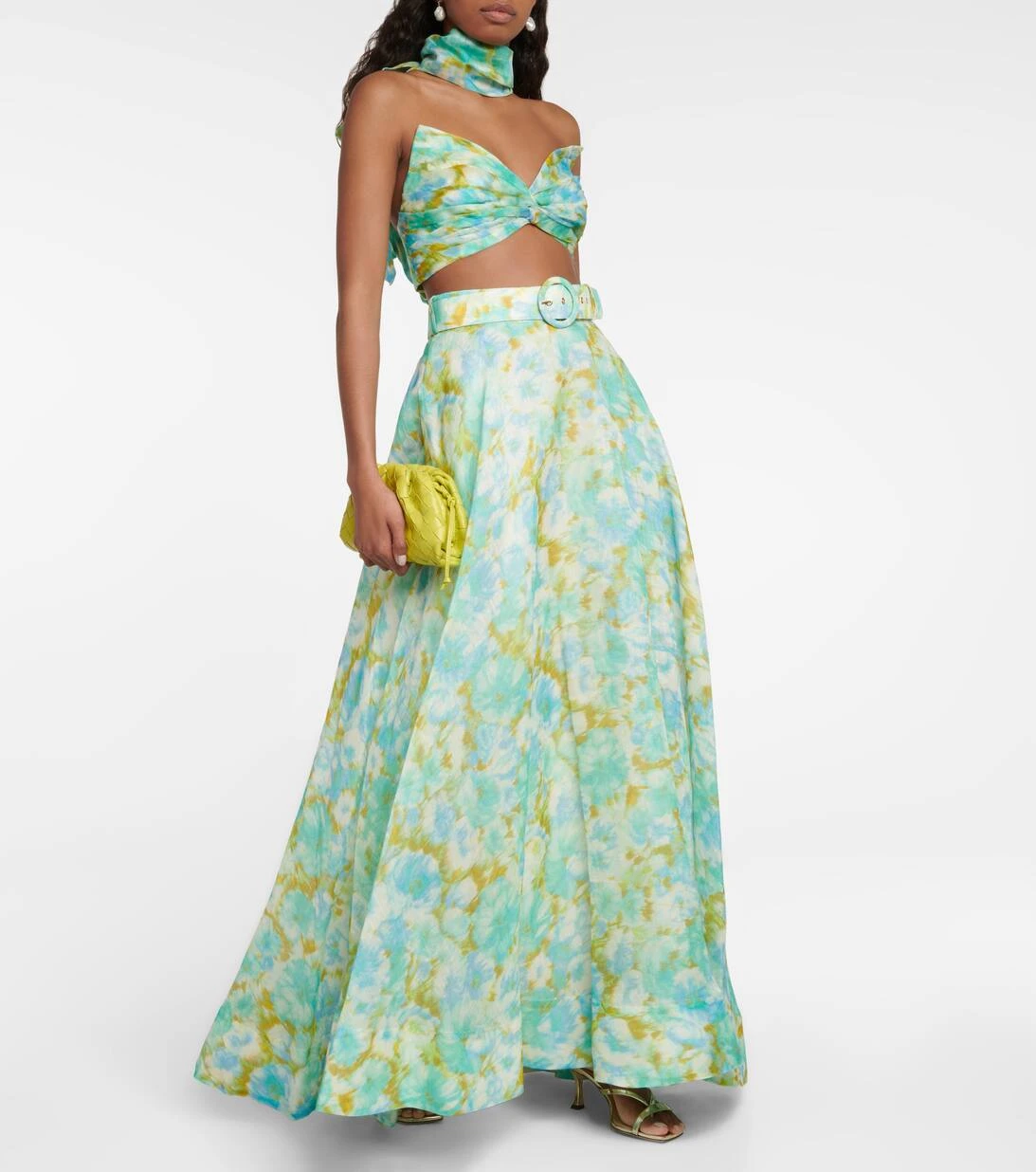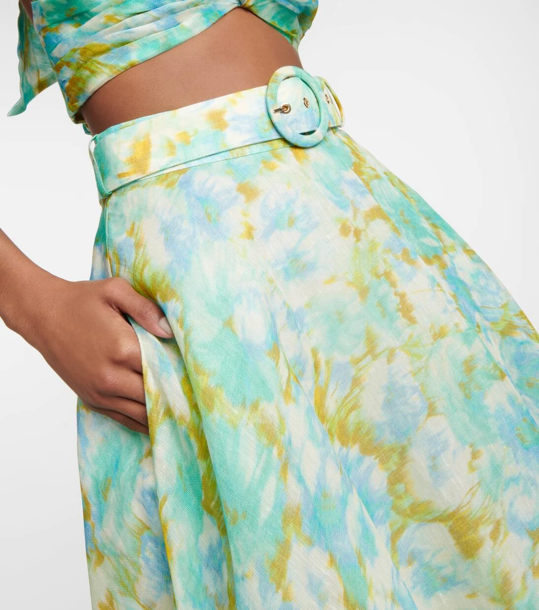 Investieren Sie für Ihr nächstes Getaway in den High Tide Maxirock von Zimmermann. Das Design besticht durch einen floralen Print und einen Gürtel an der Taille und wurde für eine leichte Silhouette aus Leinen und Seide gefertigt.
